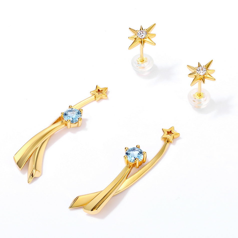 Evoke a celestial elegance with the mesmerizing blue spinel and zircon, set in sterling silver. Each earring is crafted to reflect the beauty of a meteor, adding a touch of celestial wonder to your ensemble. Elevate your look and captivate attention with these stunning stud earrings.