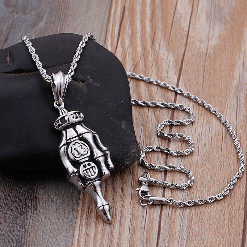 Step into the world of edgy fashion with our Punk Style Exaggerated Skull Claw Pendant, crafted for the modern man who dares to stand out. Made from high-quality titanium steel, this pendant exudes rugged charm and durability, perfect for everyday wear.