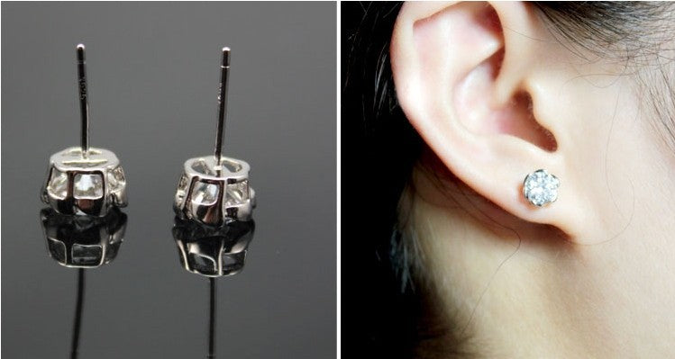 Round Zircon Plum Blossom Silver Studs Earrings for Women