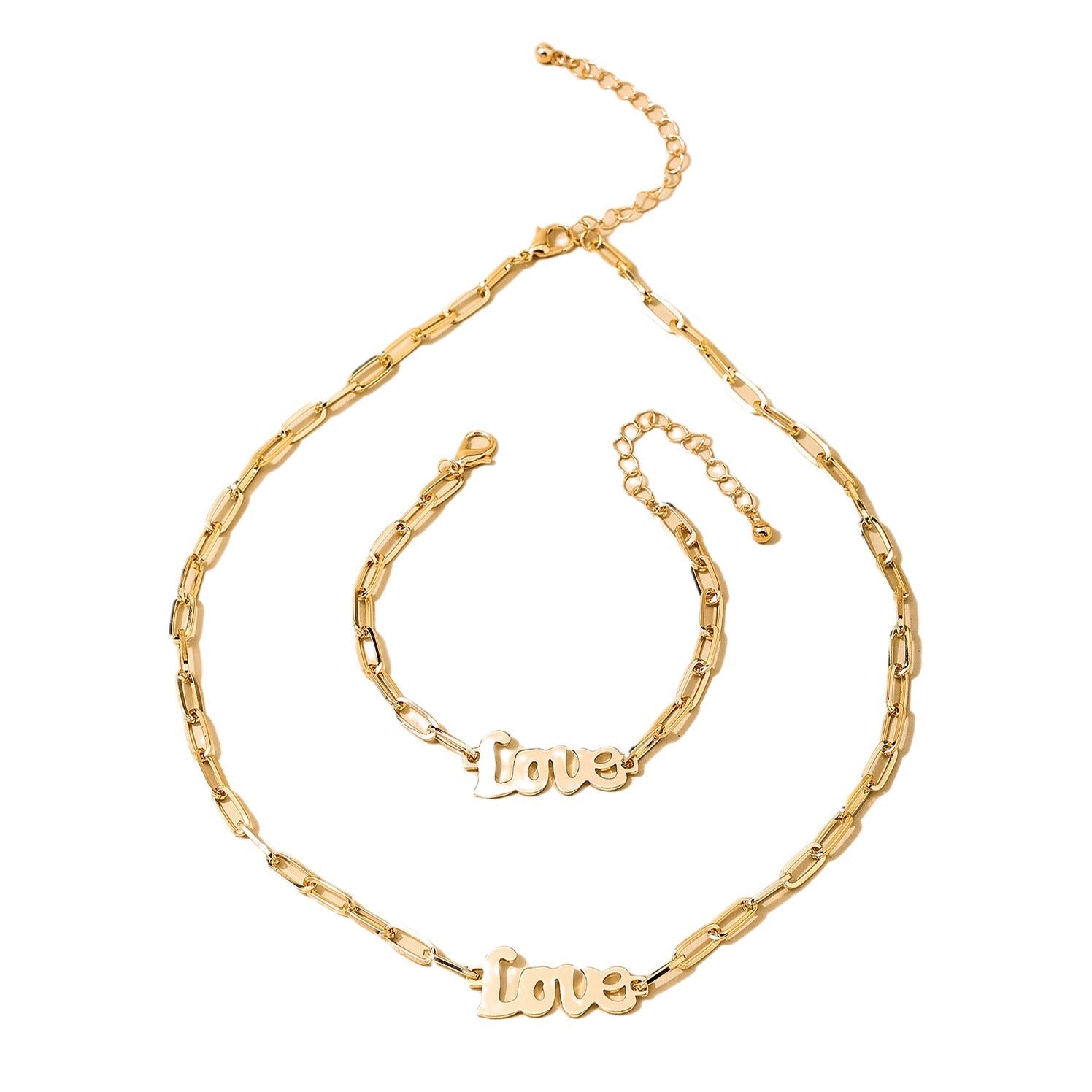 Personalized Metal Love Chain Necklace and Bracelet Set - Vienna Verve Collection