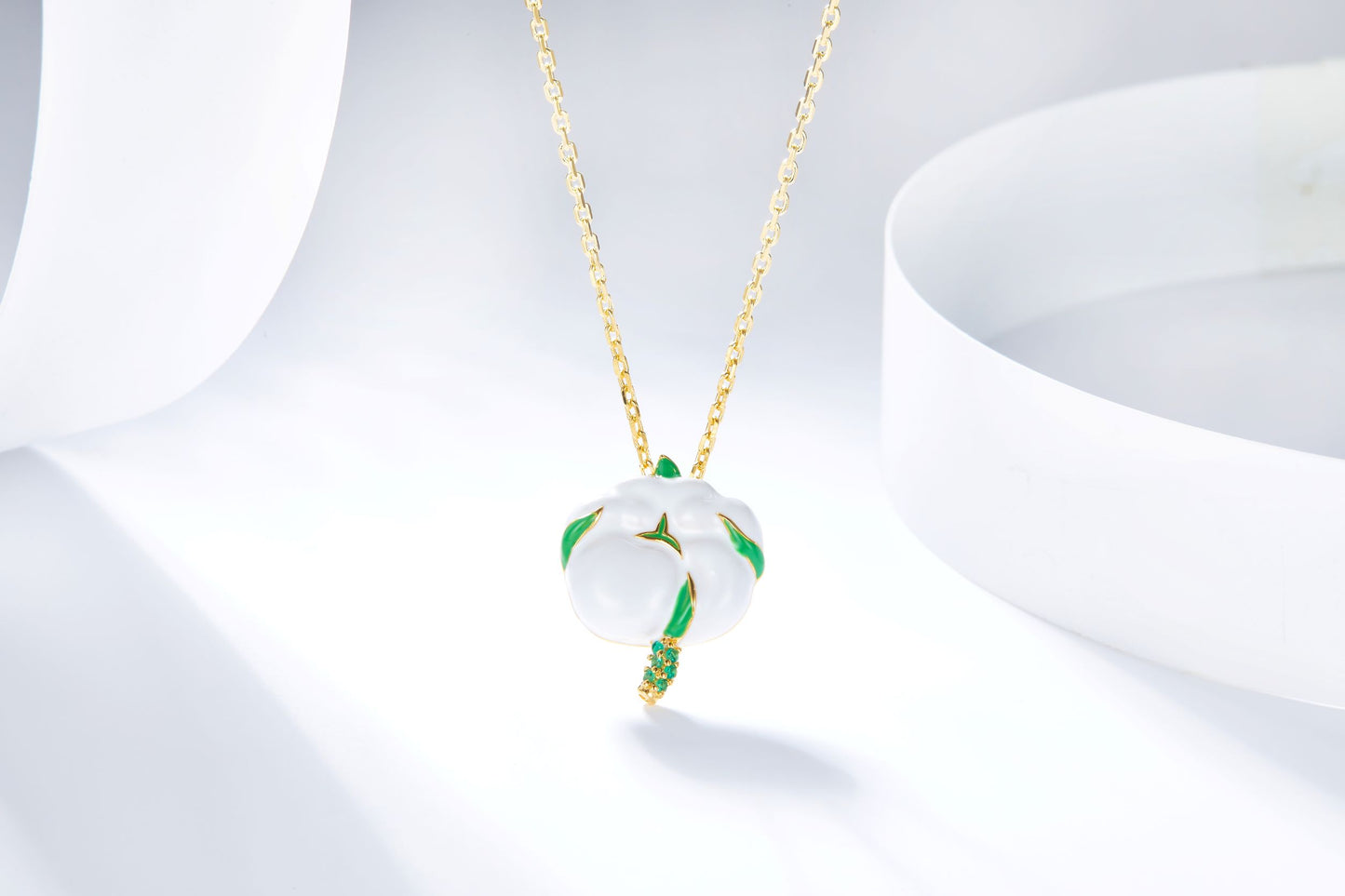 Delicately crafted with a cotton flower pendant, this golden enamel necklace is sure to add the perfect touch of elegance to any outfit. Ideal for women who appreciate simple yet sophisticated style, the necklace is sure to become a staple in any wardrobe.