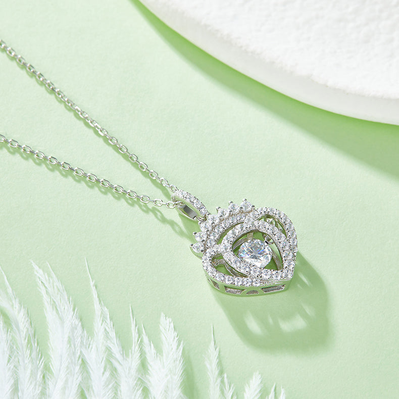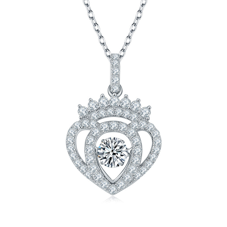 Heart Shape Crown 0.5 Carat Round Cut Moissanite Necklace