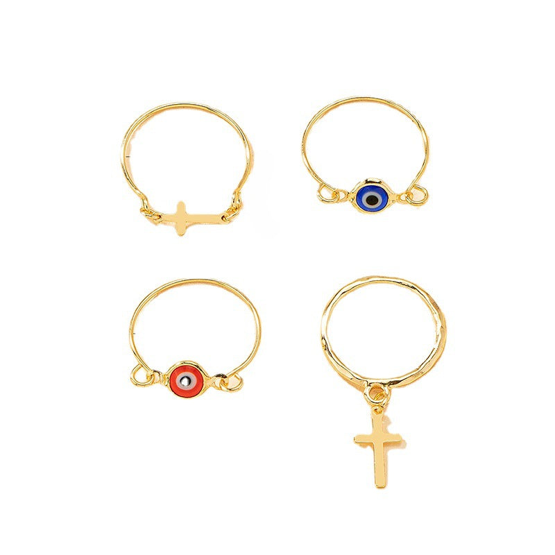 European and American Inspired 4 Cross Eyes Ring Set for Fashion-Forward Women