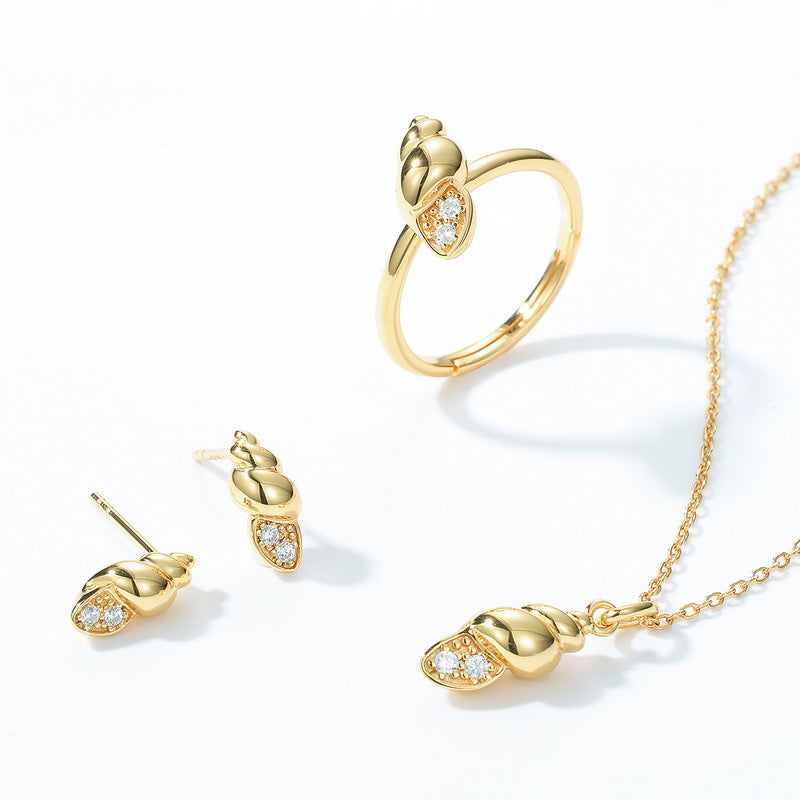 Conch Zircon Sterling Silver Stud Earrings