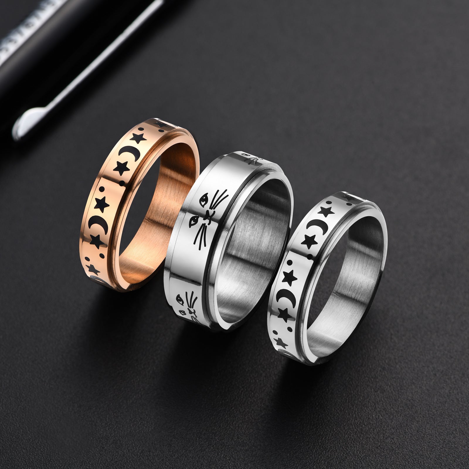 Embrace a unique blend of style and whimsy with our exquisite collection of rotating rings featuring adorable animal designs, stars, and moons. Crafted from high-quality titanium steel, these rings are the perfect accessory for any occasion, whether you're looking for something special for an engagement, wedding, or simply to elevate your everyday style.