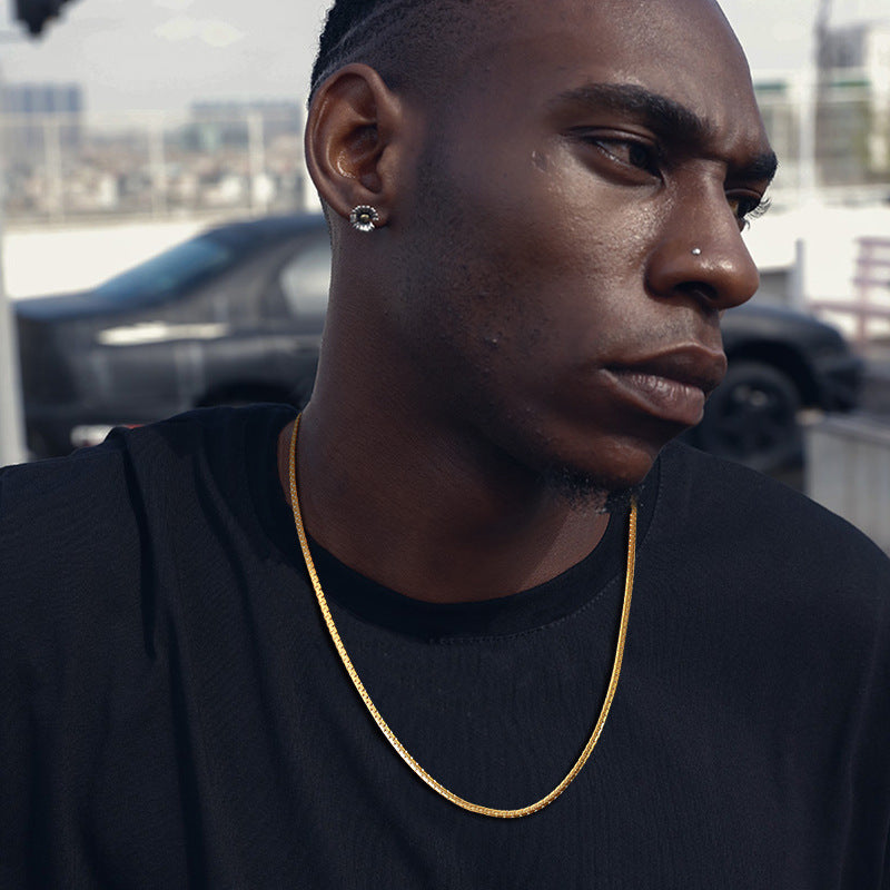 This Jewelry Chain Stainless Steel Flat Chain Necklace Gold 3MM Men's Fashion Chain Metal Jewelry for men is more than just an accessory; it’s a statement piece that reflects your personality and style. Its unique blend of classic and contemporary design ensures you stand out in any crowd. Pair it with a pendant or wear it solo for a sleek look that complements any wardrobe.