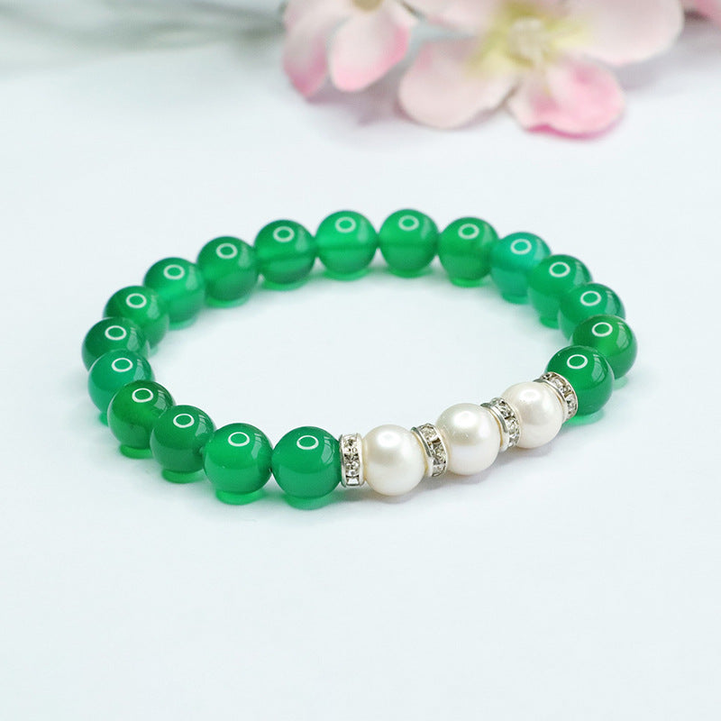 Green Chalcedony and Freshwater Pearl Sterling Silver Bracelet