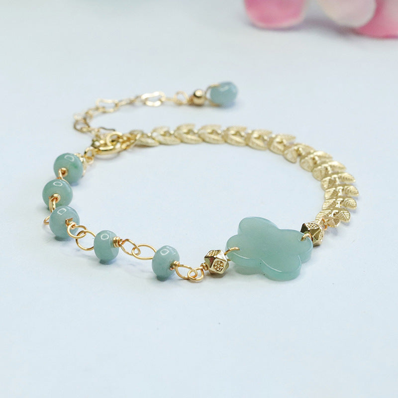 Jade Bead Bracelet with Sterling Silver Clover Accent