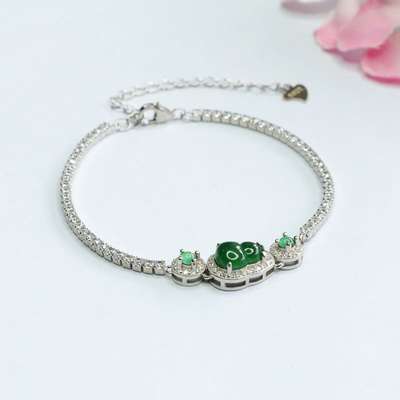 Emperor Green Gourd Jade Bracelet with Sterling Silver