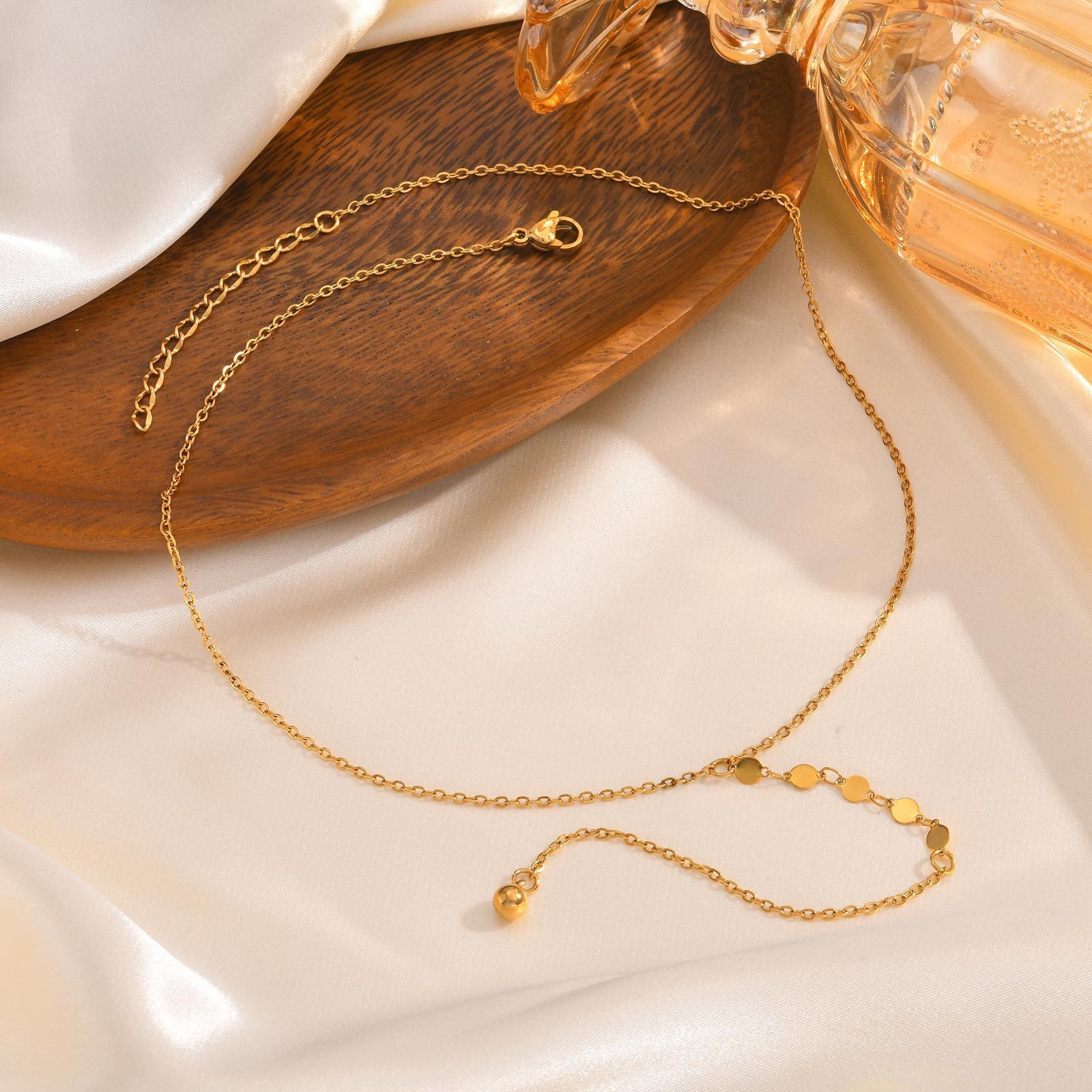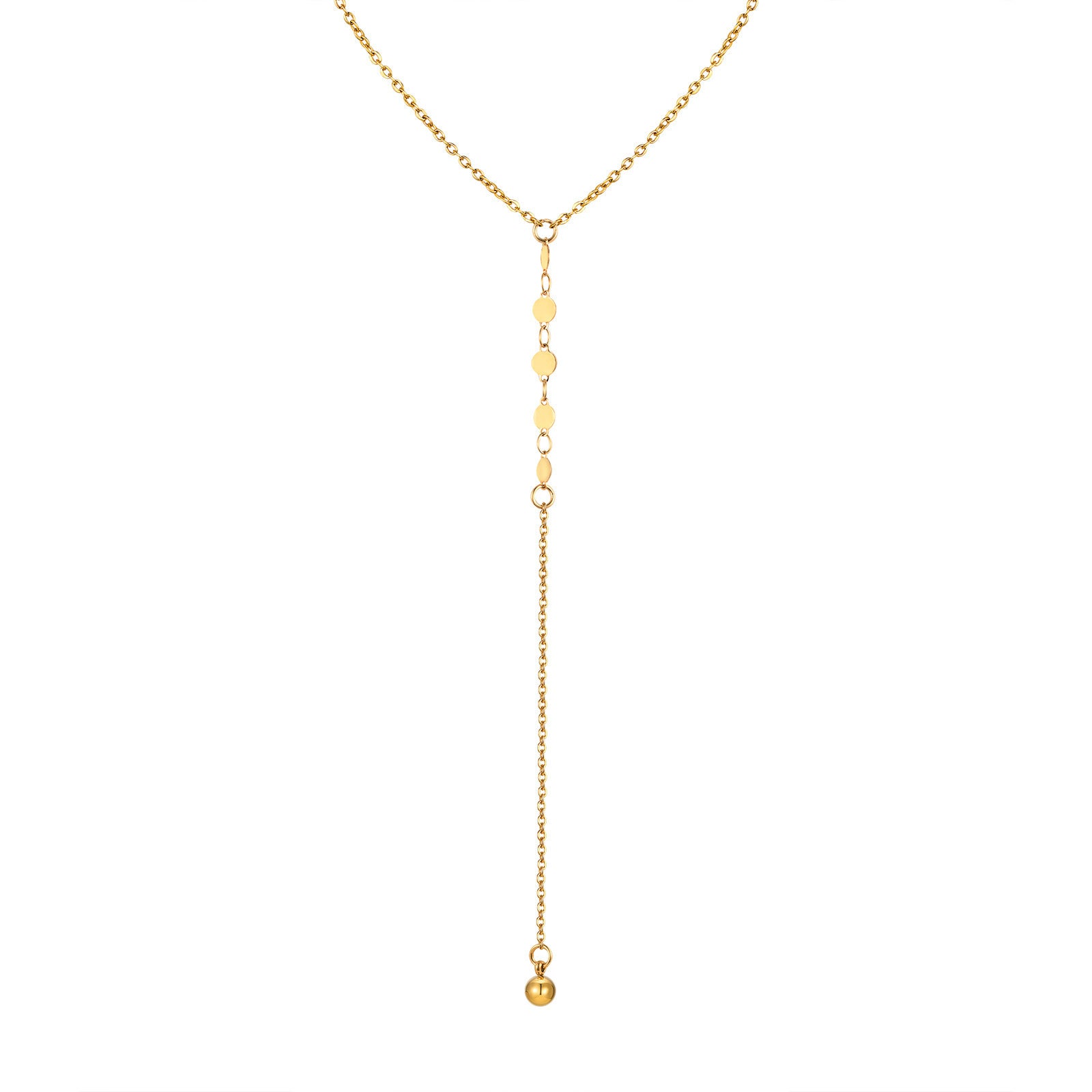 Ladies Necklace Stainless Steel Flat Cross Chain Disc Y Gold