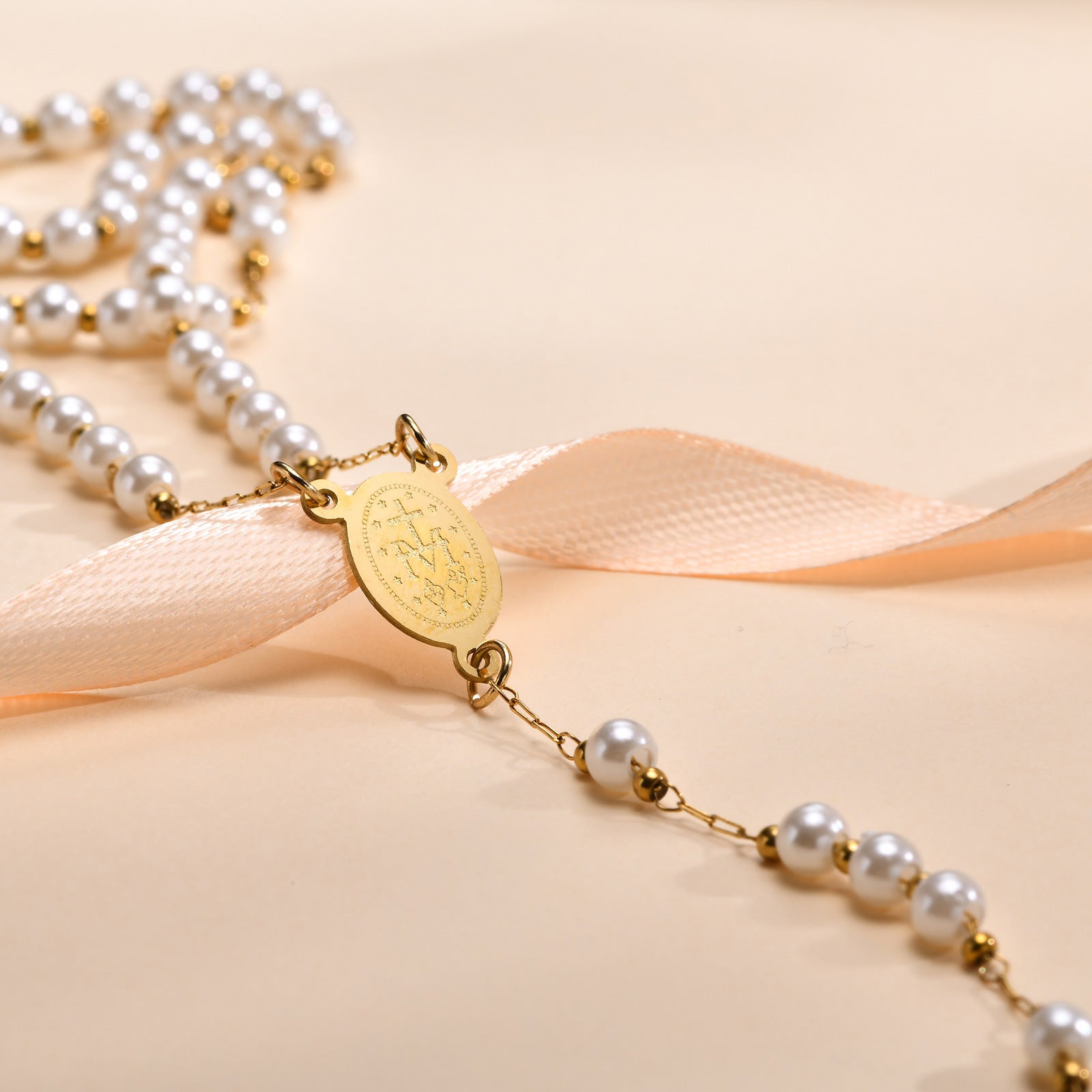 Discover the elegance and spirituality of the Ladies Stainless Steel Virgin Mary Cross Imitation Pearl Beaded Long Necklace Gold. This exquisite piece is designed to complement your style while offering a beautiful representation of faith. Crafted from high-quality stainless steel, this necklace features a stunning Virgin Mary cross pendant that symbolizes devotion and grace. The imitation pearl beading adds a touch of sophistication, making it perfect for both casual and formal occasions.