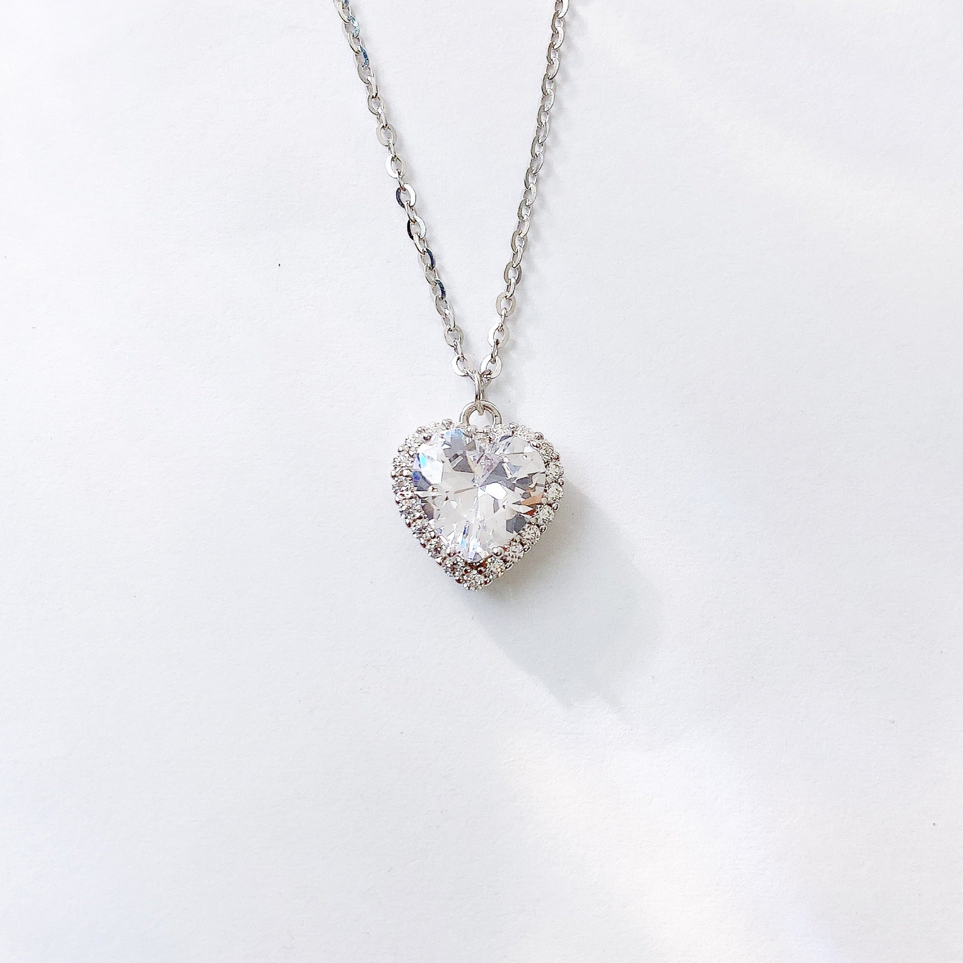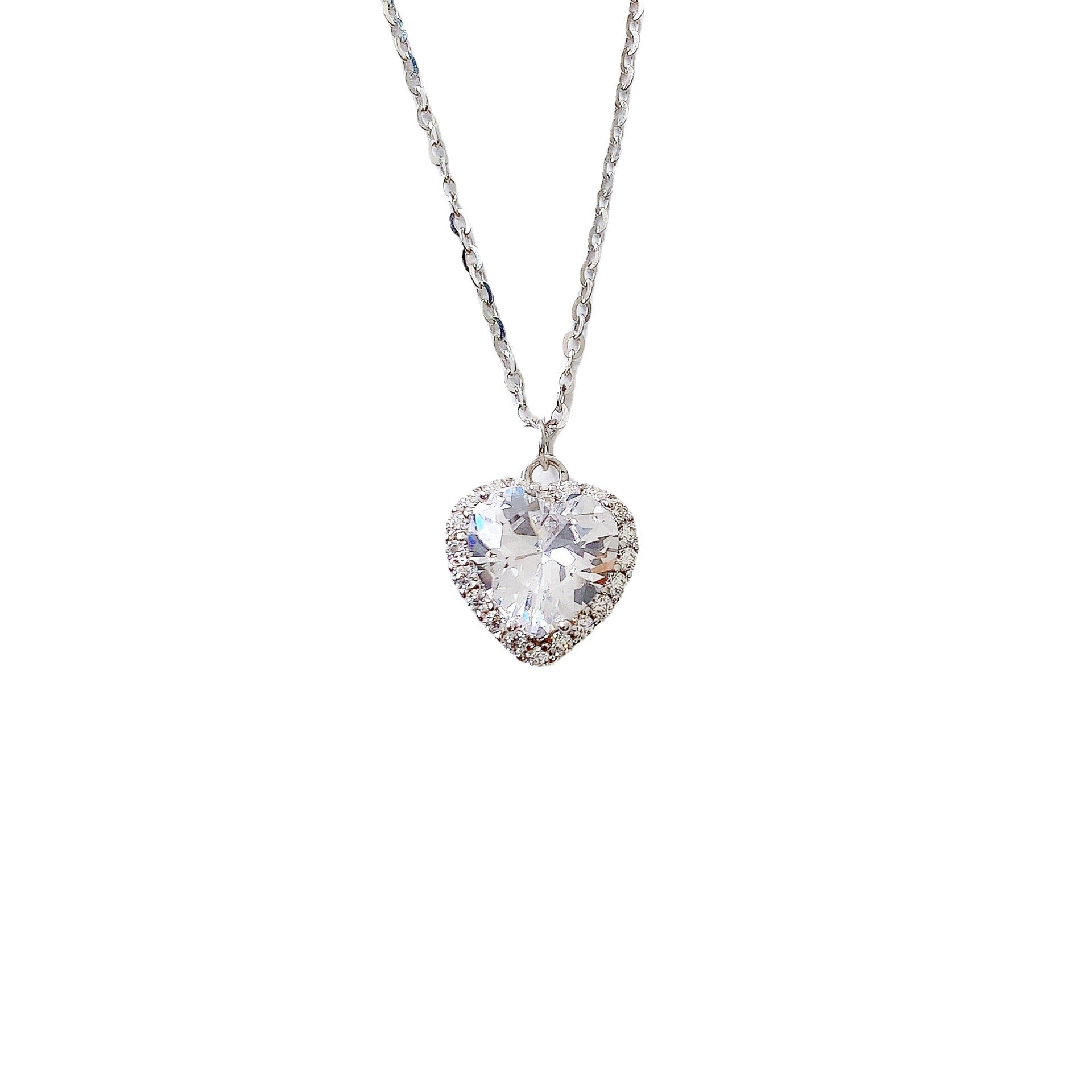 Heart-shape Zircon Soleste Halo Pendant Silver Necklace for Women