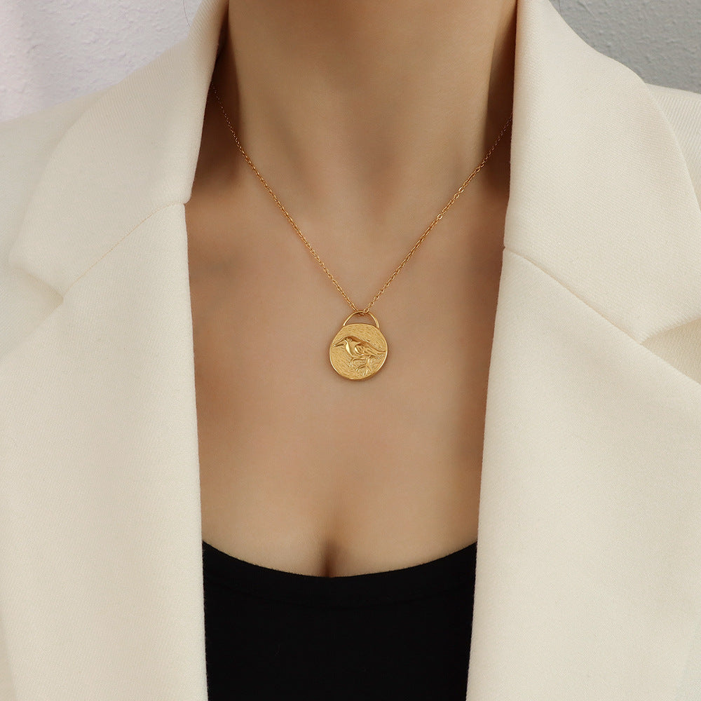 French Bird and Dolphin Reversible Pendant Titanium Steel Necklace