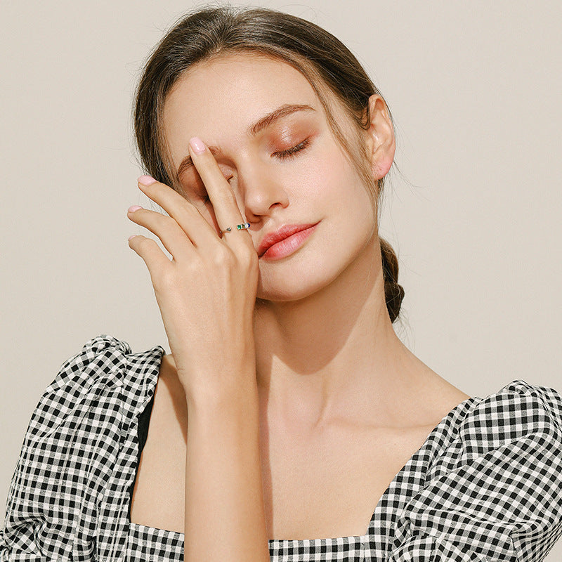 Elegant Sterling Silver Ring with Crystal Inlay - Women's Korean Style