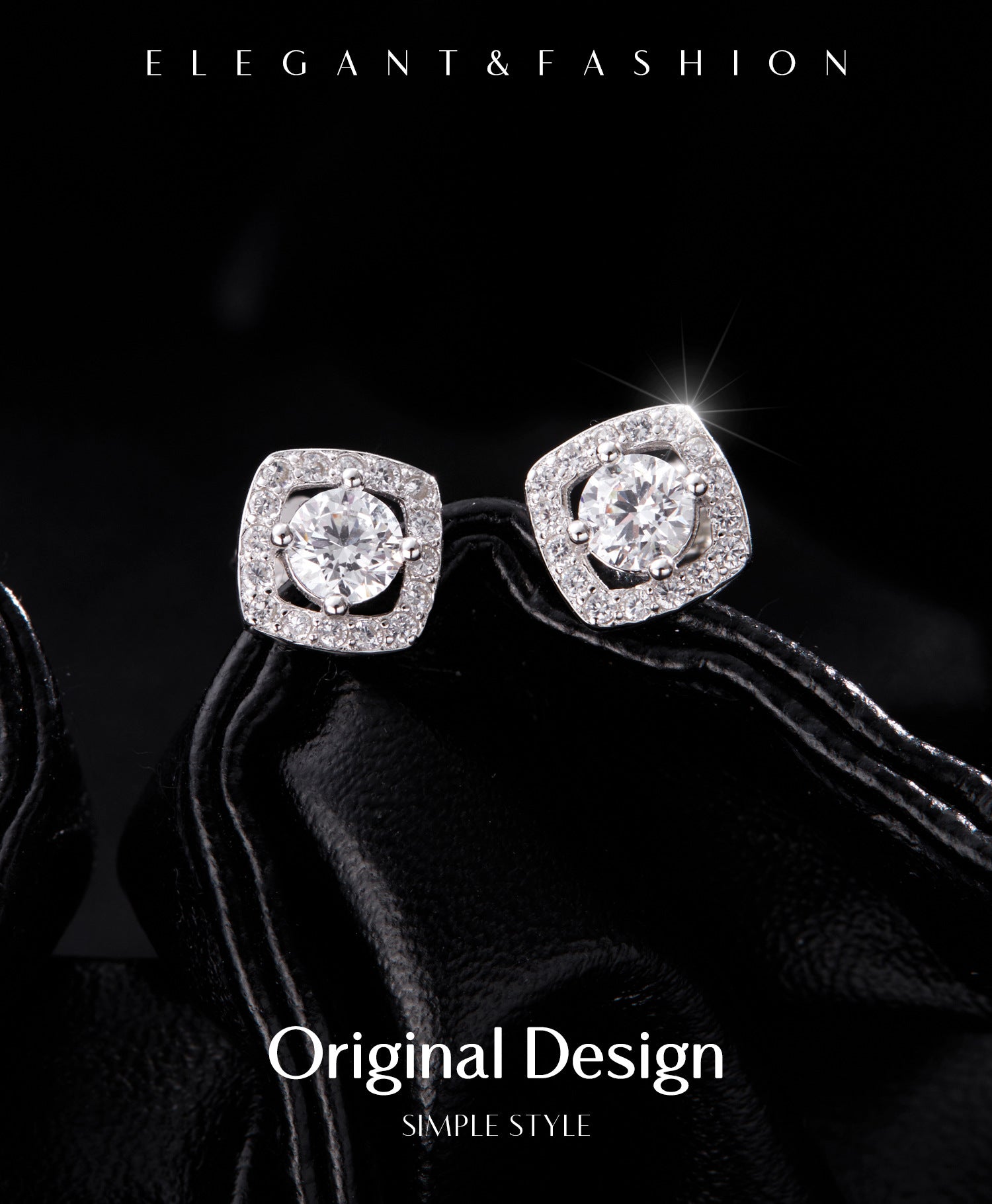 S925 Sterling Silver French Elegant OL Commuter Hollow Geometric Full Zircon Sugar Cube Earrings by Planderful delivers a stunning touch of elegance for everyday wear.