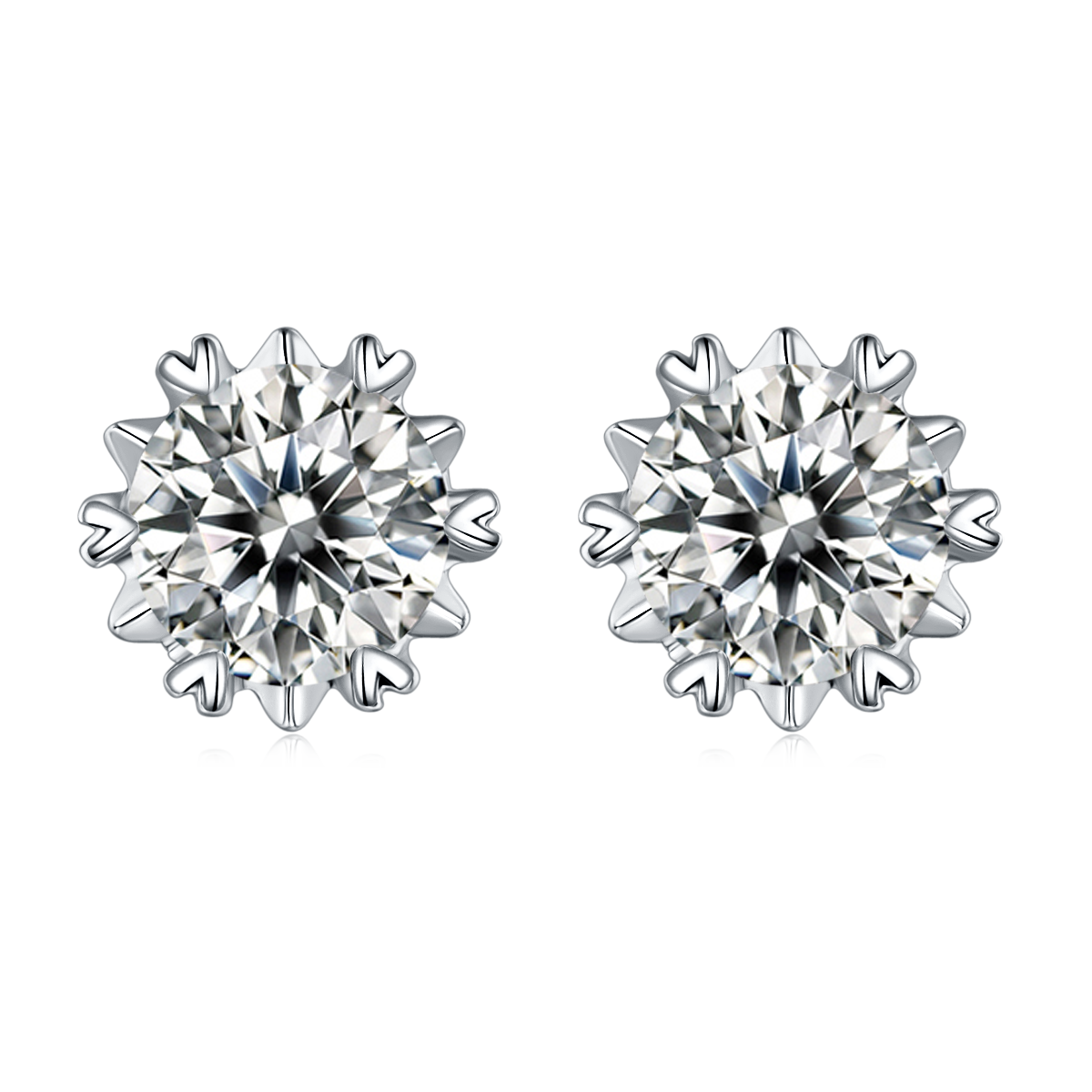Six Heart Shape Prongs Round Cut Moissanite Earrings