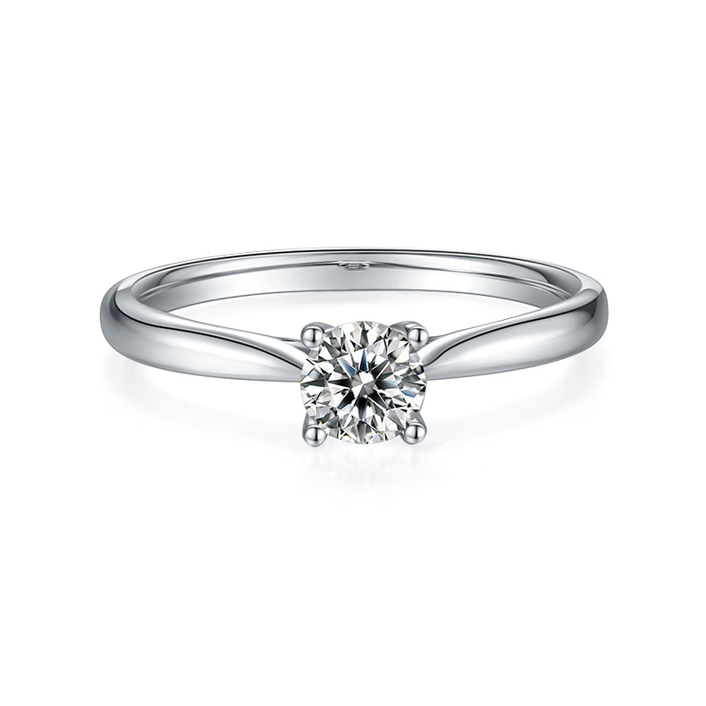 Let her sparkle brightly with this four-pronged Classic Round Cut Moissanite ring. Set with 0.5 carats of expertly cut gleaming Moissanite, this ring is the perfect way to express your lasting love. Perfectly cut for maximum fire and brilliance, this timeless style is a sparkling classic.