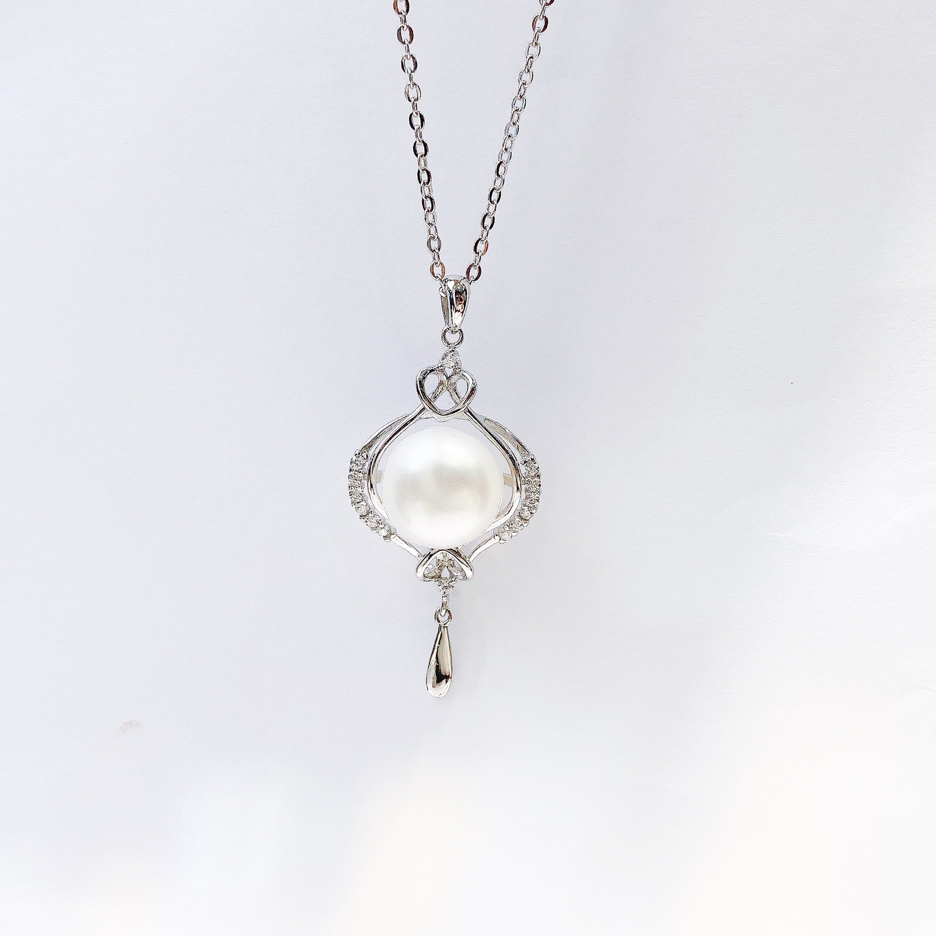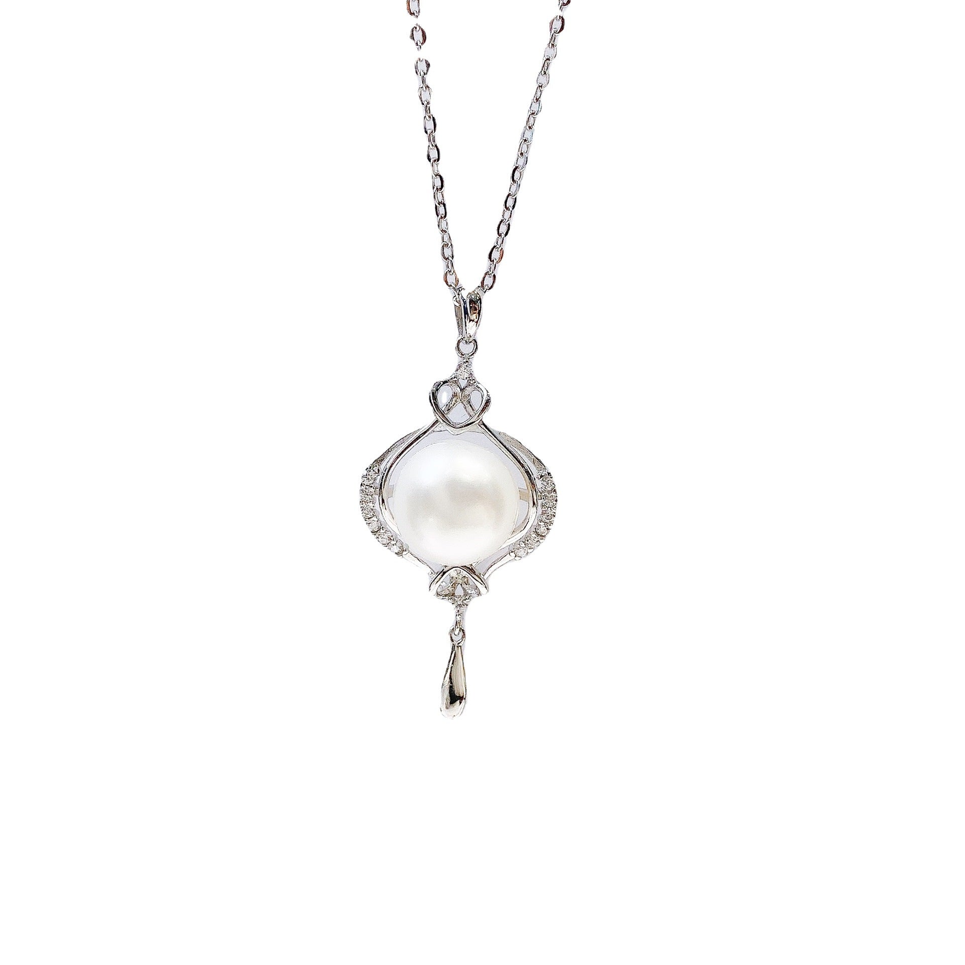 Round Natural Pearl Lantern Shape Pendant Silver Necklace for Women