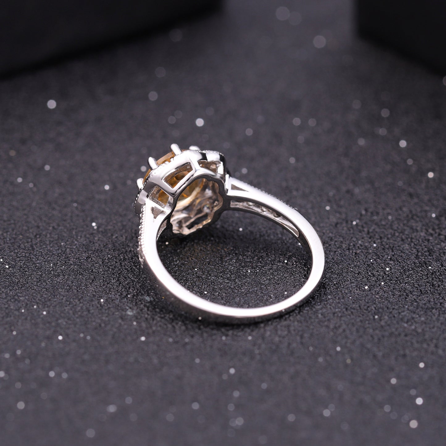 Fashion Luxury Style Inlaid Natural Colourful Gemstone Flower Soleste Halo Round Cut Sterling Silver Ring for Women