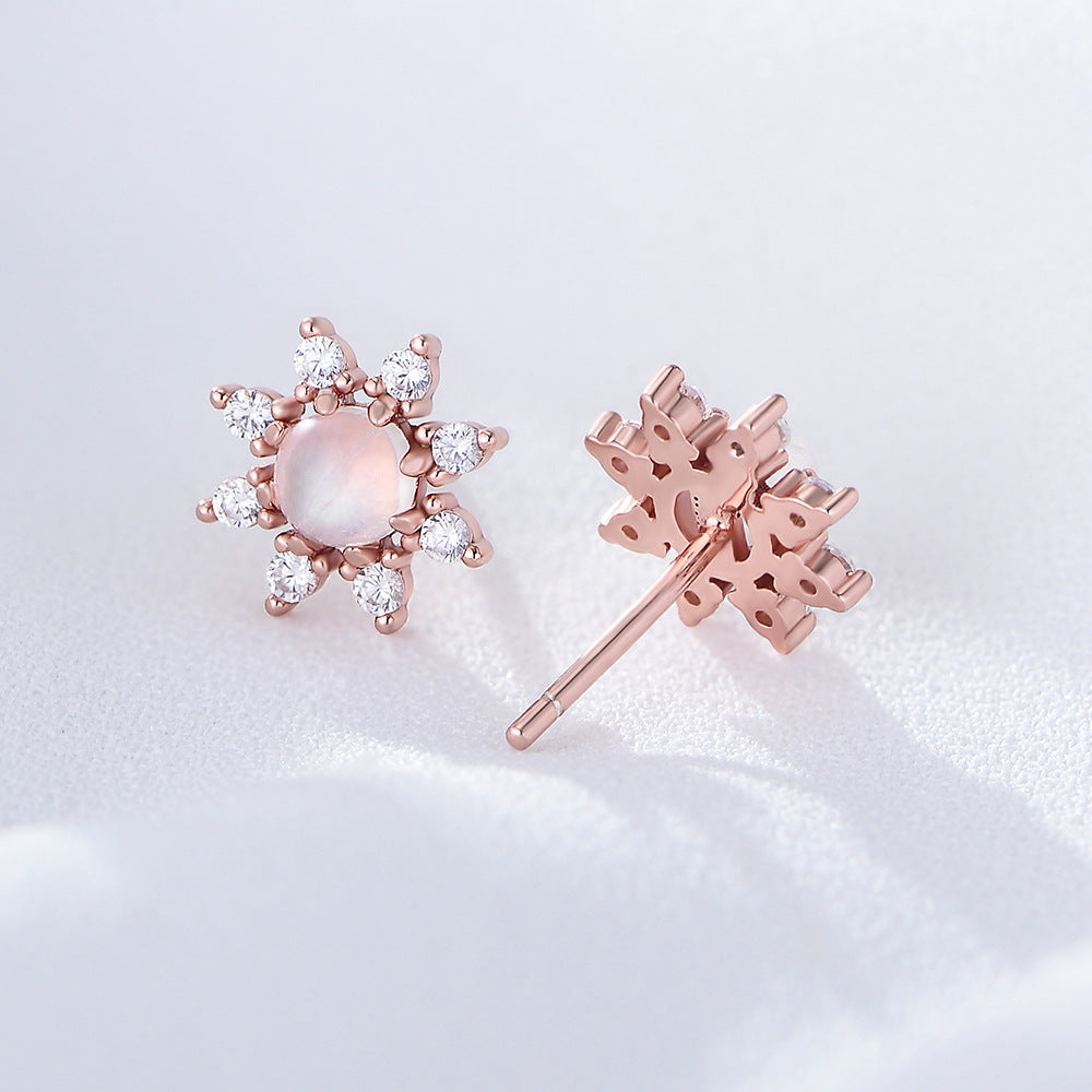 Moon Stone Sunflower Silver Studs Earrings for Women