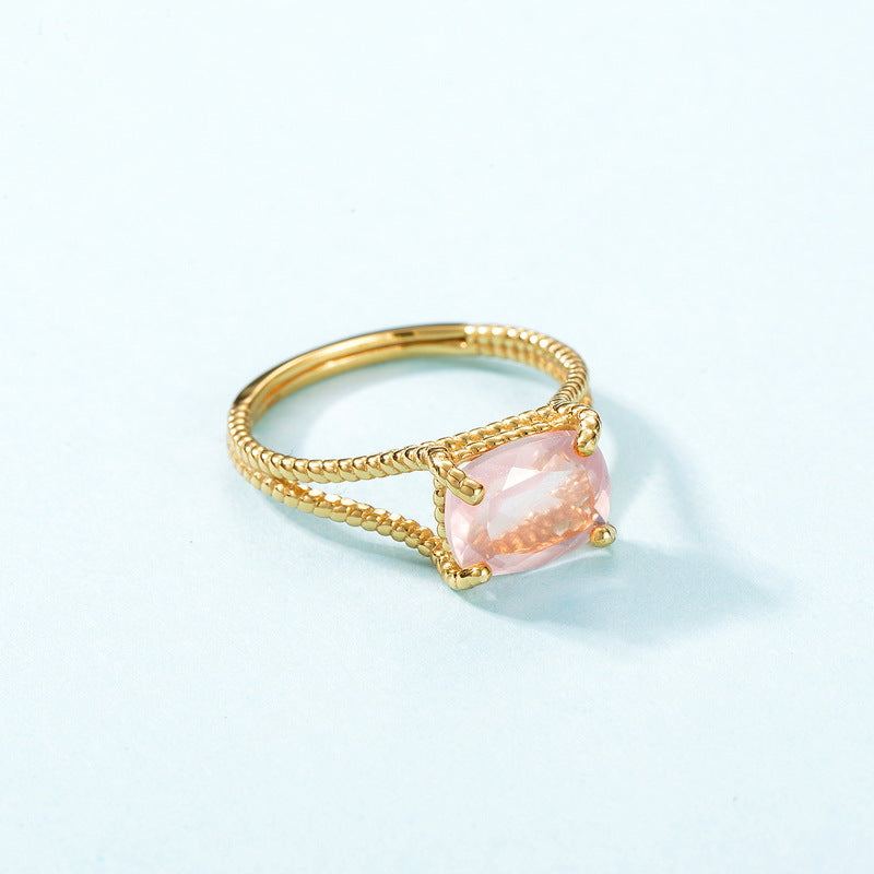 Split Shank Radiant Cut Pink Crystal Opening Silver Ring