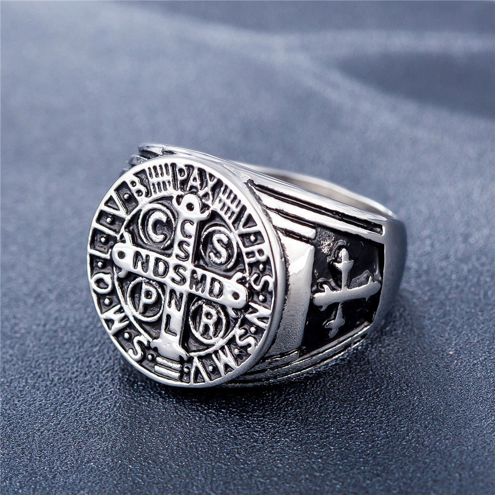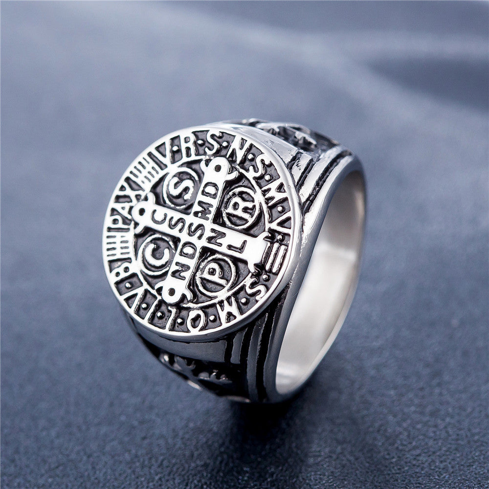 Greek Cross Flory Round Titanium Steel Ring for Men