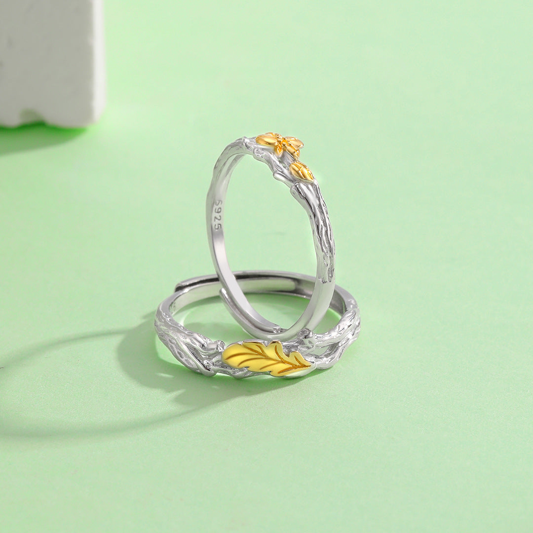 Planderful Oak and Kapok Couple Ring S925 Sterling Silver Mori Small Fresh Premium Ring Valentine's Day Gift