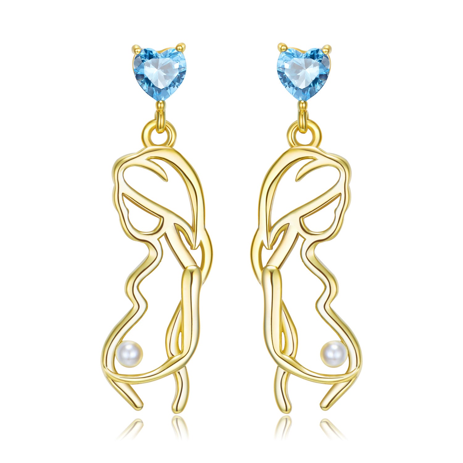 These elegant Pregnant Mother Heart Shape Blue Zircon Pearl Drop Earrings are a beautiful combination of elegance and sophistication. Crafted with sterling silver plated in gold, and featuing a Pregnant Mother pendant with a Heart Shape Blue Zircon and a Pearl, these earrings are perfect for any special occasion.