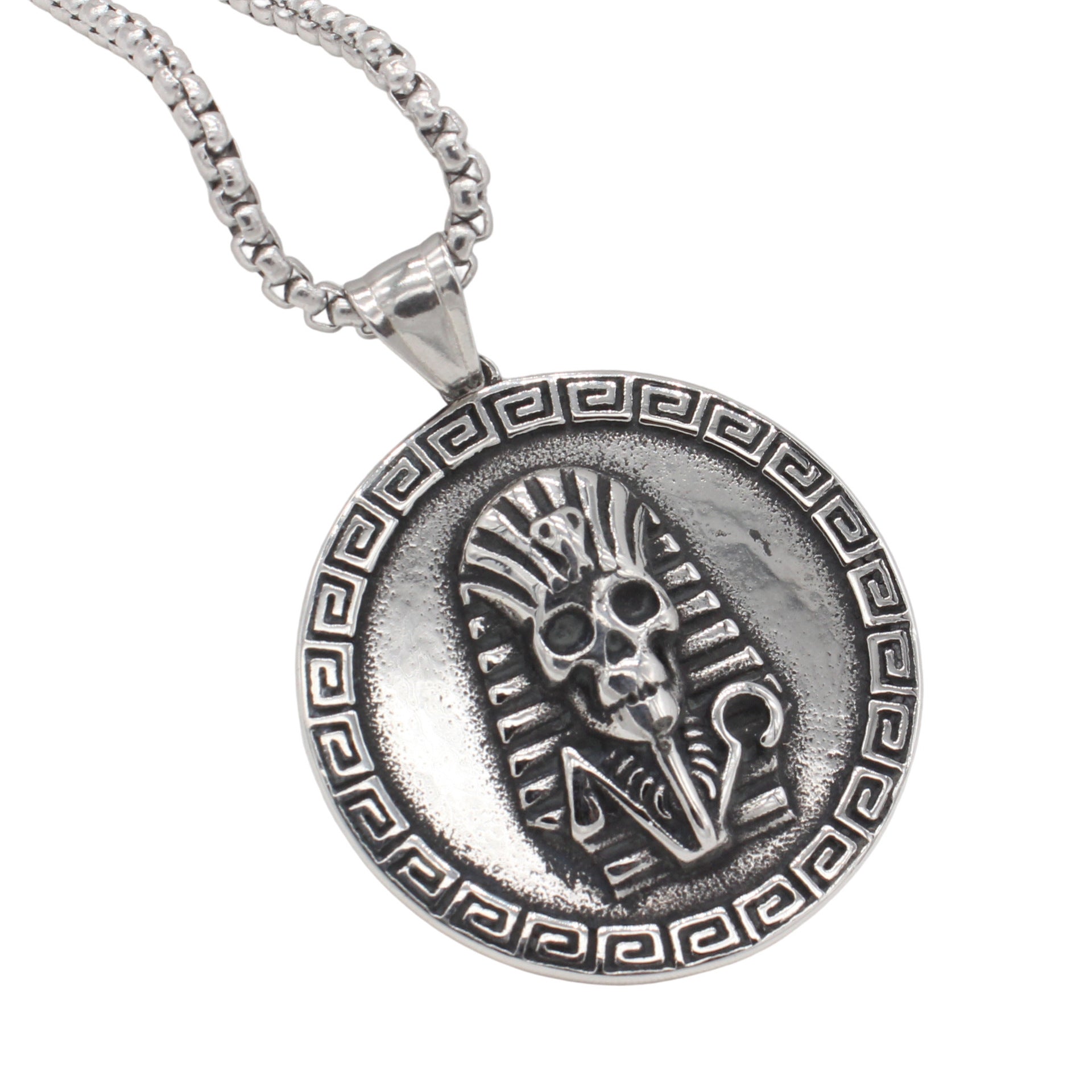 Foreign trade jewelry wholesale and European and American personalized retro Egyptian pharaoh men's titanium steel pendant necklace for men by Planderful Collection delivers a bold, timeless statement piece that enhances any men's fashion ensemble.