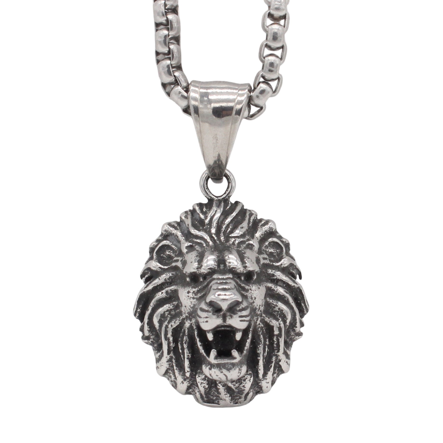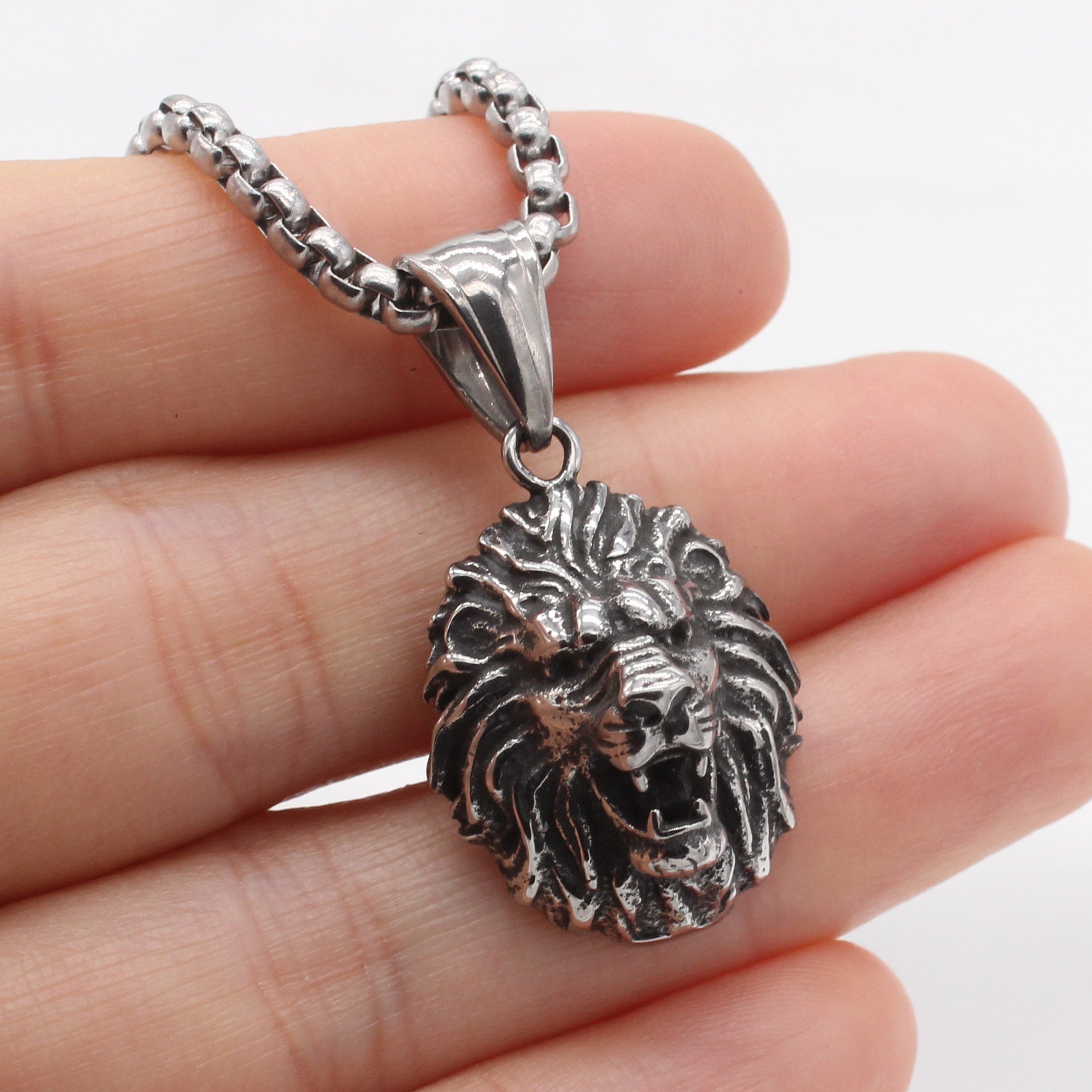 Planderful Everyday Genie – European and American Retro Lion Head Men's Titanium Steel Pendant Necklace for Men