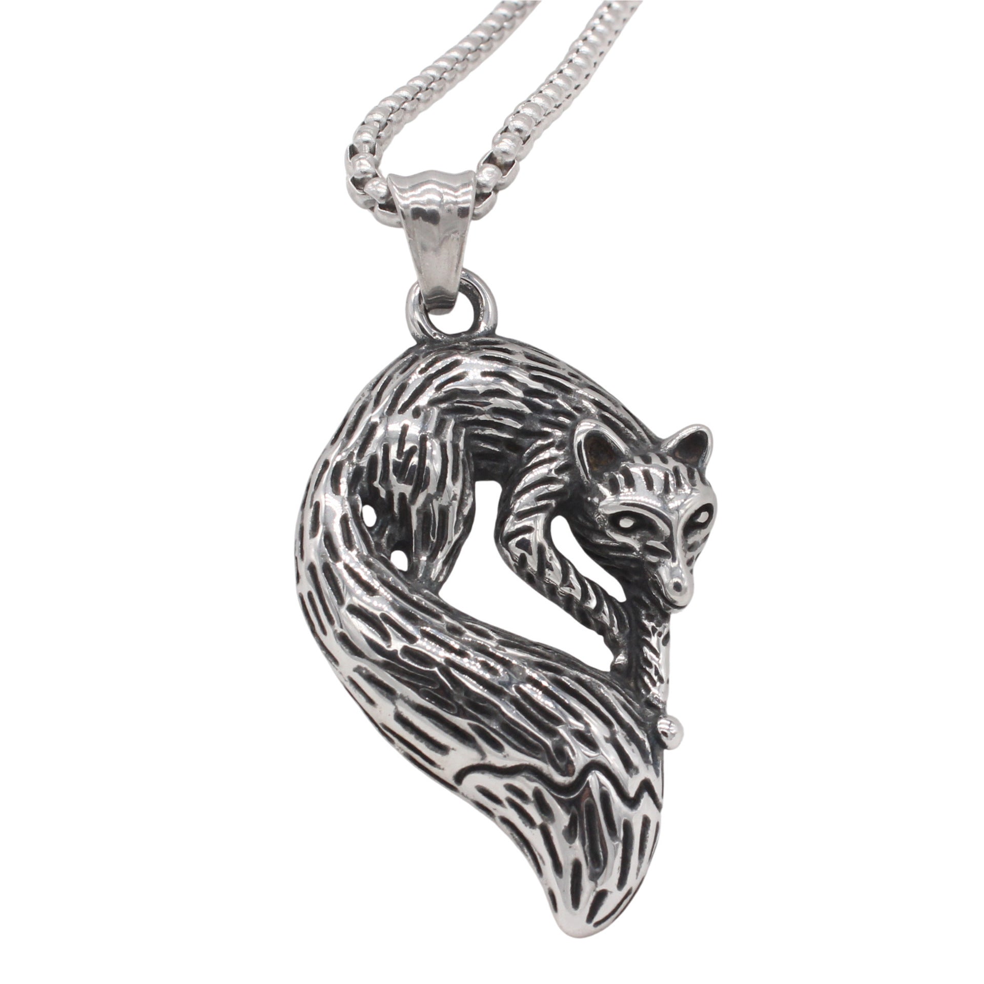 Planderful Everyday Genie – European and American Retro Fox Titanium Steel Pendant Necklace for Men