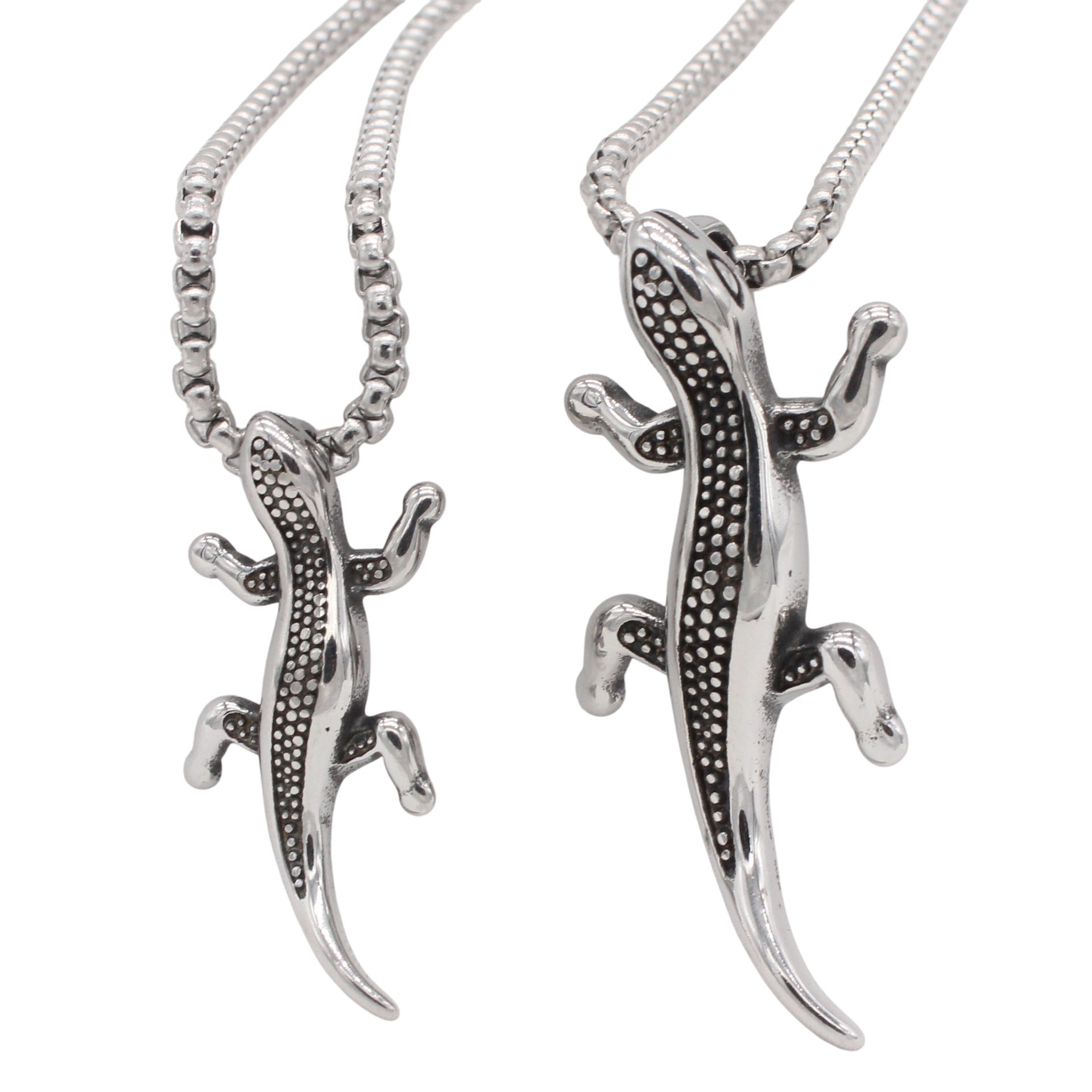 Foreign trade jewelry wholesale, European and American personalized retro lizard men's titanium steel pendant necklace for men by Planderful delivers a unique blend of style and durability for fashion-forward men seeking a distinctive accessory.