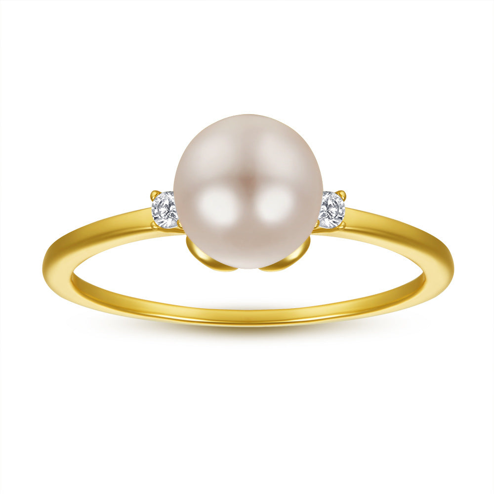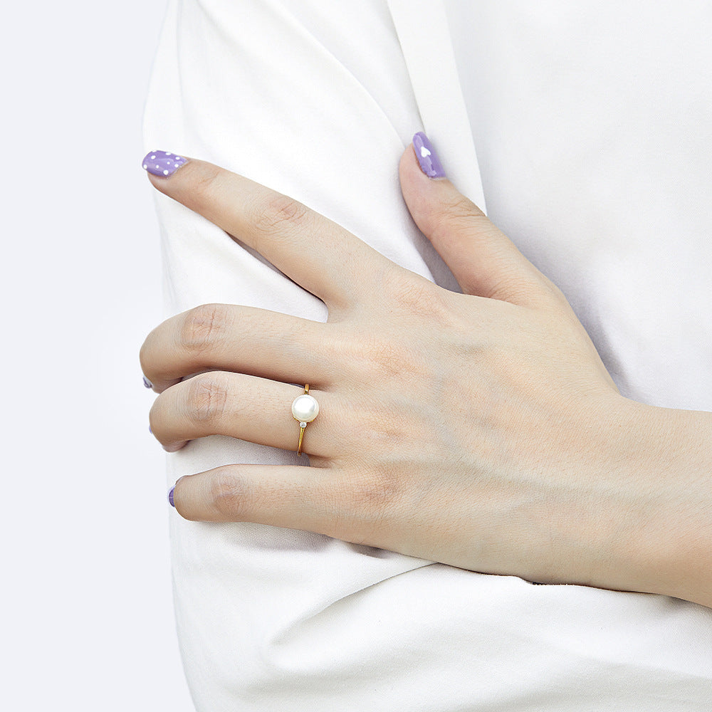 This classic sterling silver ring is adorned with an alluring round Pearl. Its solitaire design makes it an effortless addition to any ensemble. Plated in gold, it's a timeless, sophisticated piece of jewelry, it captures the light beautifully and will be sure to sparkle with every move.