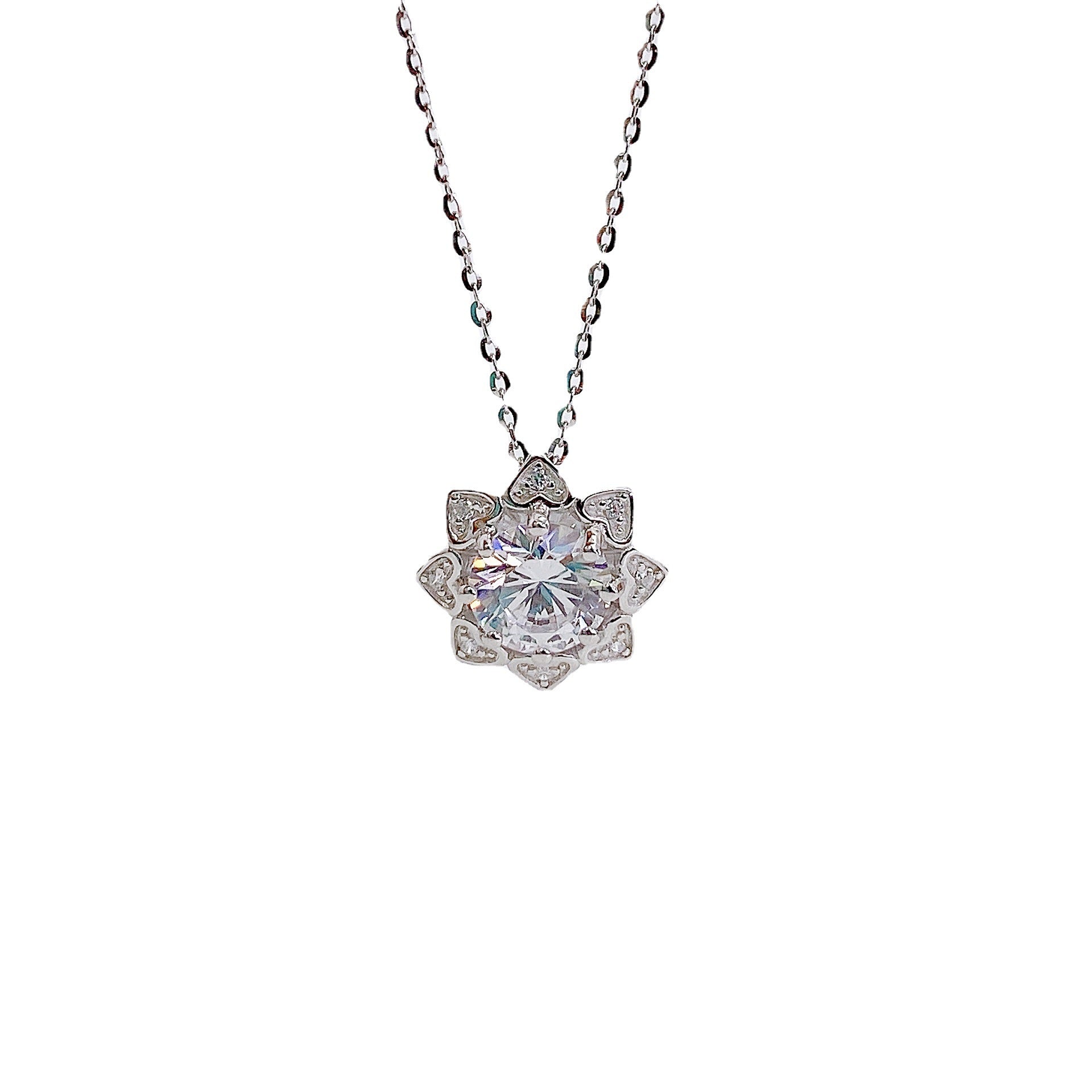 Round Zircon Heart-shape Petal Pendant Silver Necklace for Women