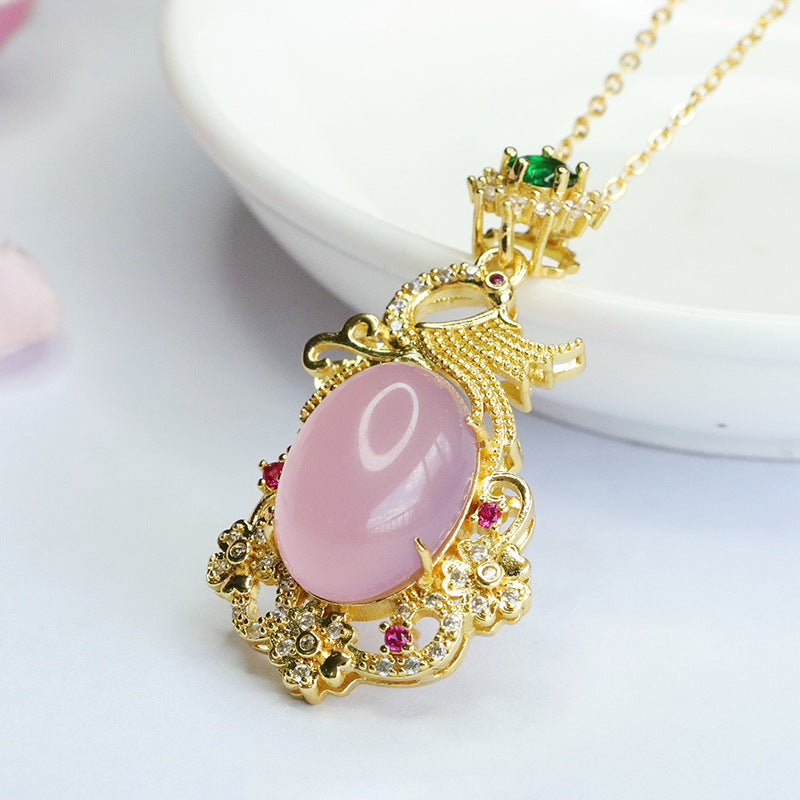 Elevate your style with our exquisite Pigeon Egg Pink Chalcedony Zircon Phoenix Pendant Necklace. Crafted with precision and elegance, this necklace is a true symbol of sophistication and grace. Here's why you'll love it: