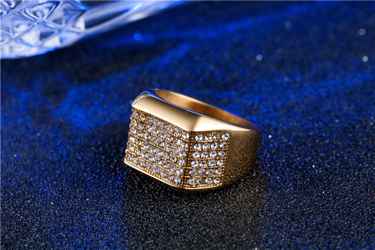 Wholesale European and American Hip-hop Men's Titanium Ring with Full Zircon Gold Embellishments