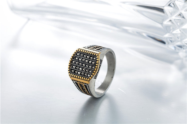 Retro Zircon-encrusted Titanium Steel Men's Ring
