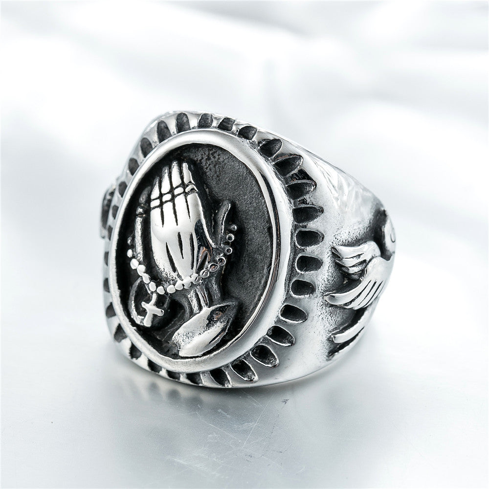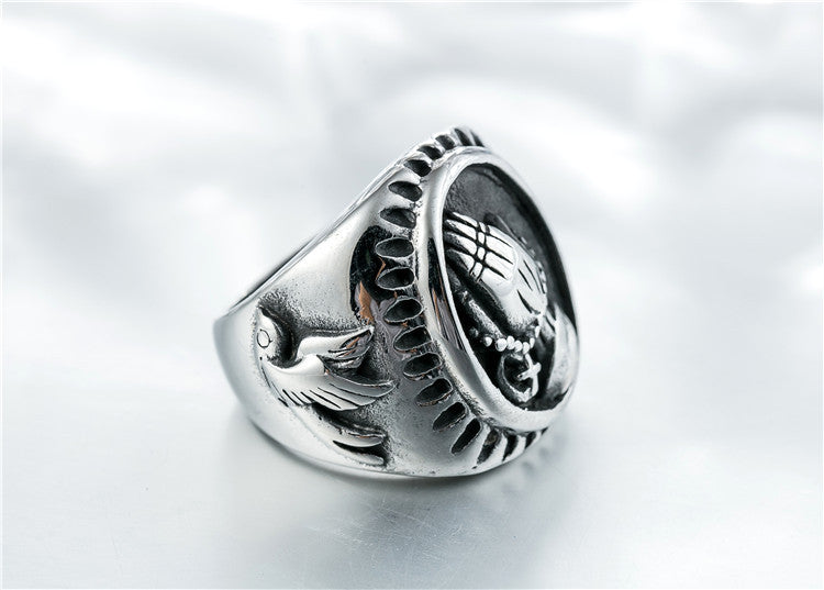Retro Peace Dove Men's Titanium Steel Ring for Wholesale