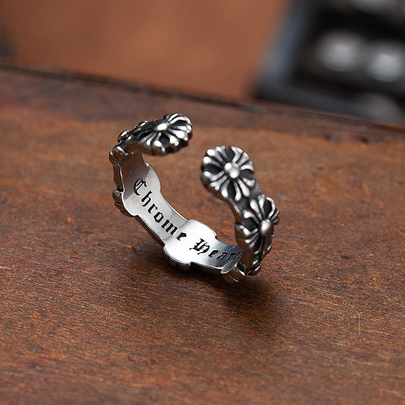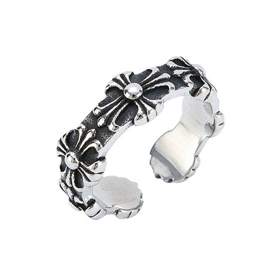 This opening titanium steel ring for men features cross flower design that adds classic elegance to any outfit. Durable and attractive, this timeless ring is perfect for any occasion.