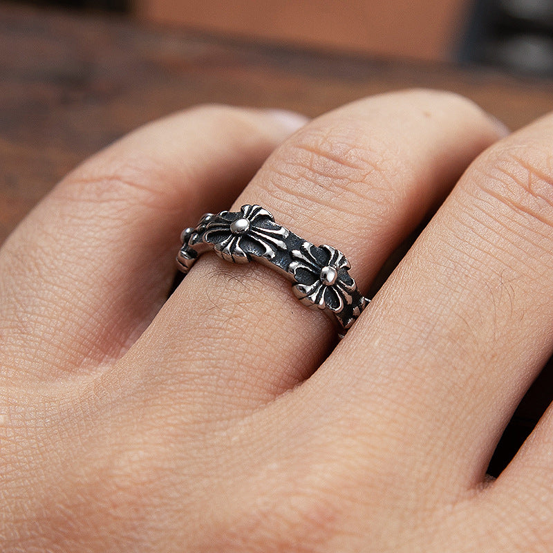 Simple Cross Flower Open Titanium Steel Ring for Men