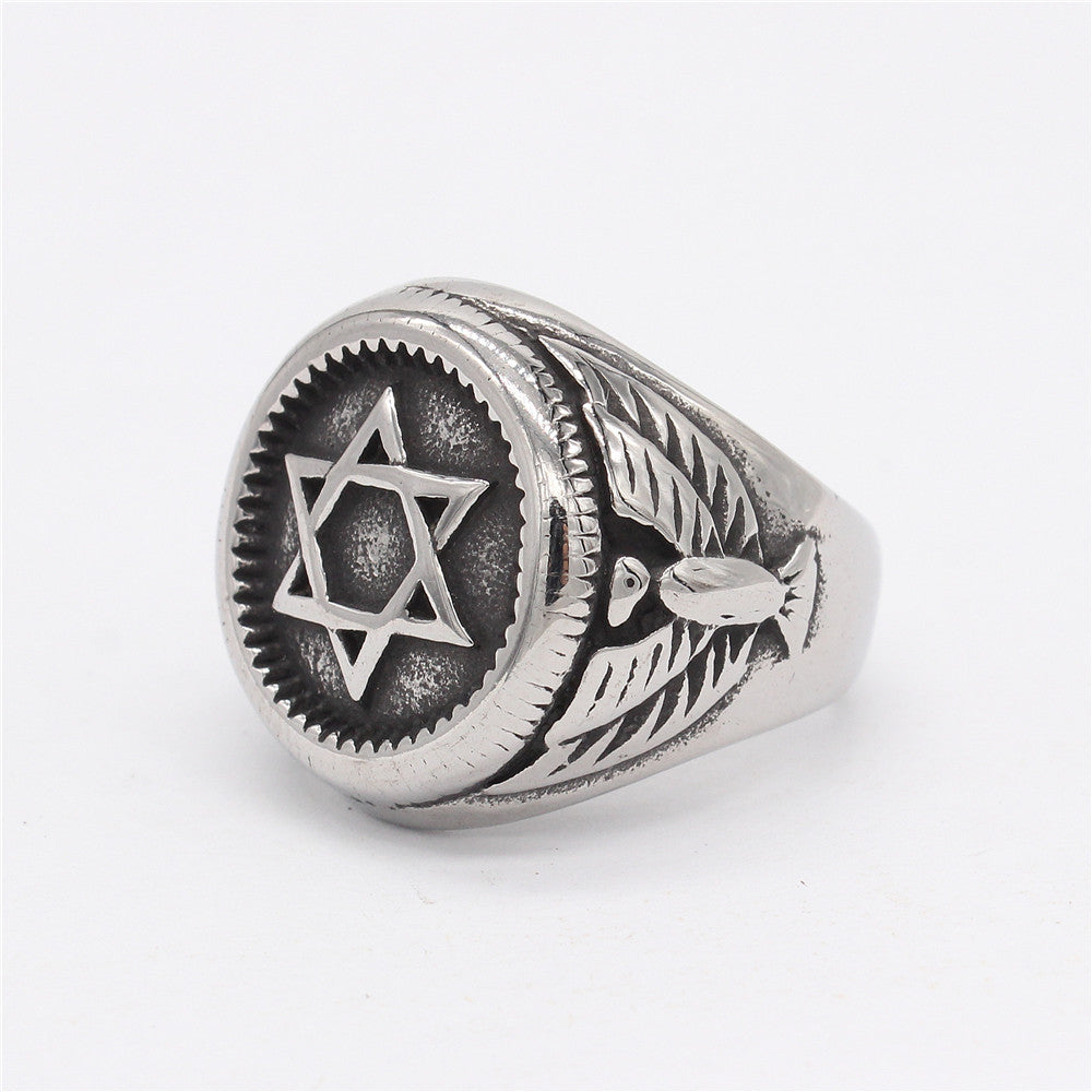 Personalized Retro Six Star Eagle Titanium Steel Ring for Men