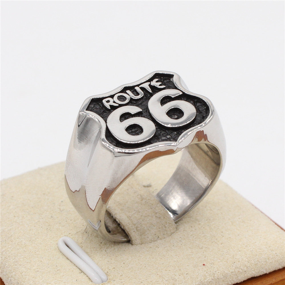 Vintage Route 66 Men's Titanium Steel Ring with European and American Personality