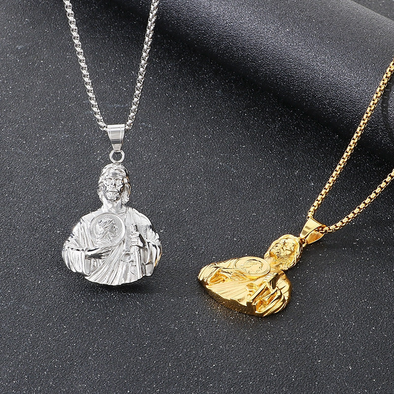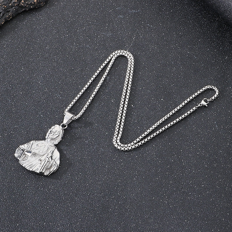 Discover the Planderful retro portrait pendant, a stylish fusion of European and American fashion aesthetics. The St. Jude bust motif is rendered with a sleek electroplating finish on stainless steel, creating a bold, enduring pendant designed for men who appreciate classic charm with a modern edge.