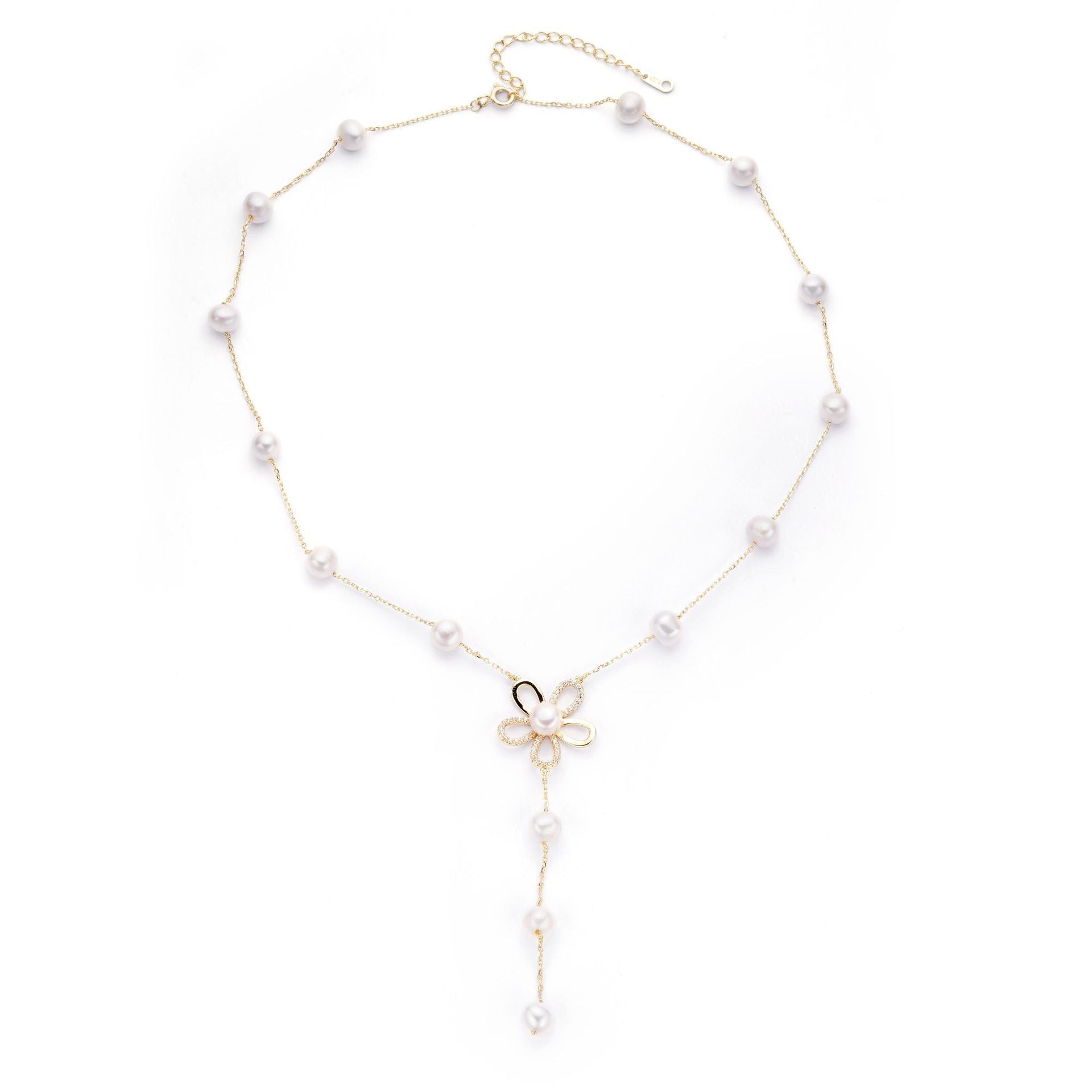 S925 Silver Hollow Flower Pearl Necklace for Women Wholesale