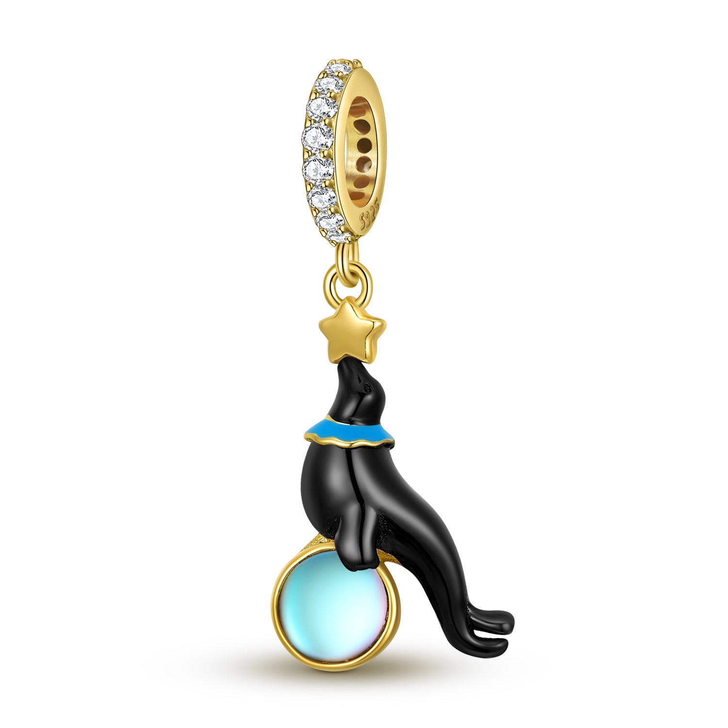 Planderful Everyday Genie S925 Sterling Silver Cute Animal Black Seal Pendant Inlaid Moonstone Fashion Bracelet Necklace DIY Accessories Pendant