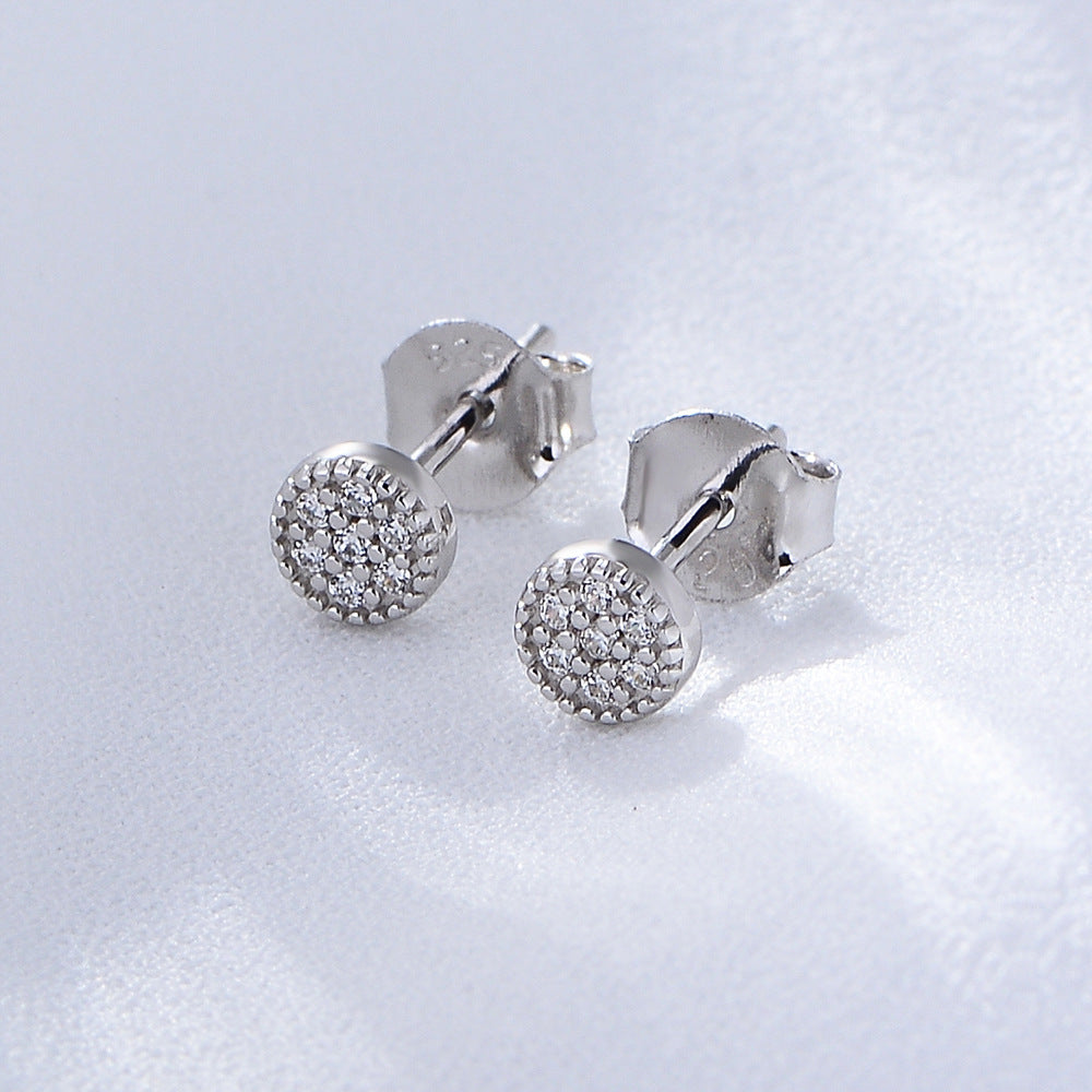 Made with shinny Zircon, this Mini Round Silver Studs Earrings will give your look the perfect finishing touch. Delicate and stylish, they are sure to add a touch of sparkle to any outfit.