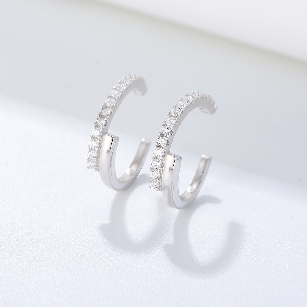 Double C with Zircon Silver Ear Bone Clip Earrings for Women