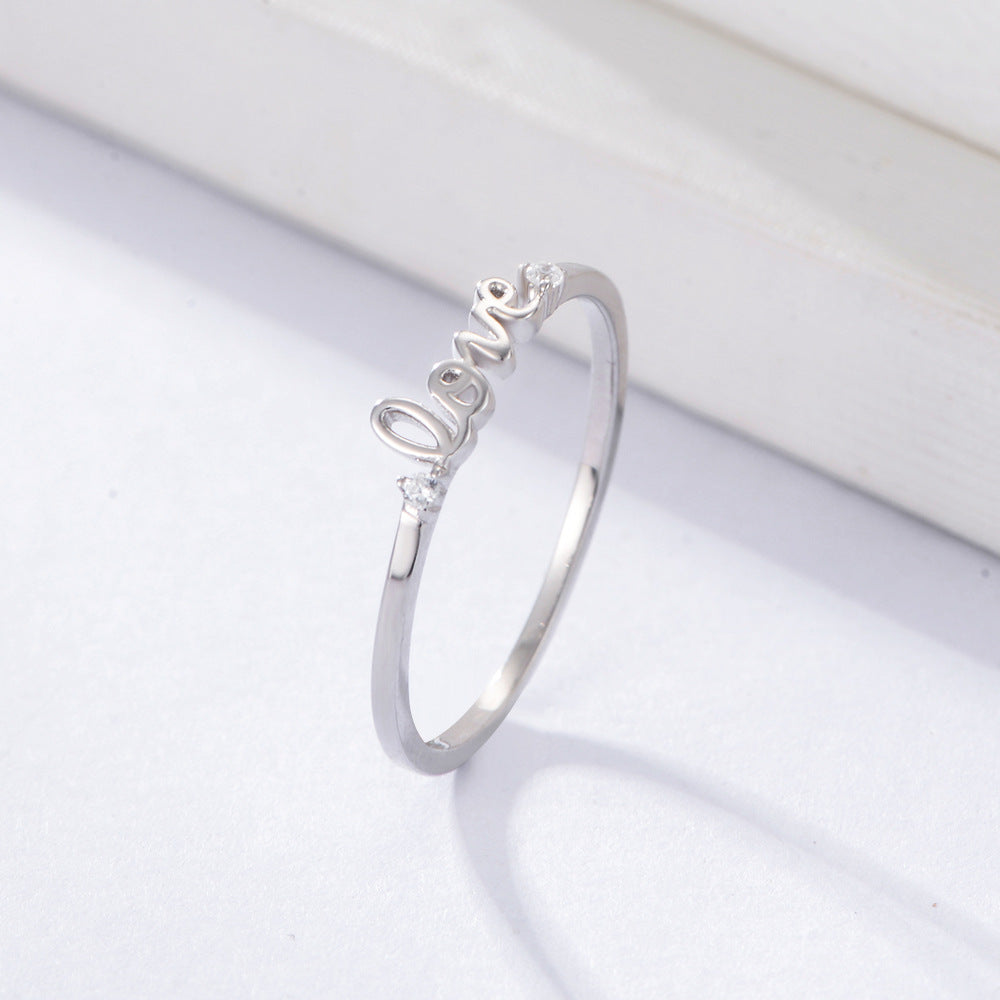LOVE Letter with White Zircon Sterling Silver Ring for Women