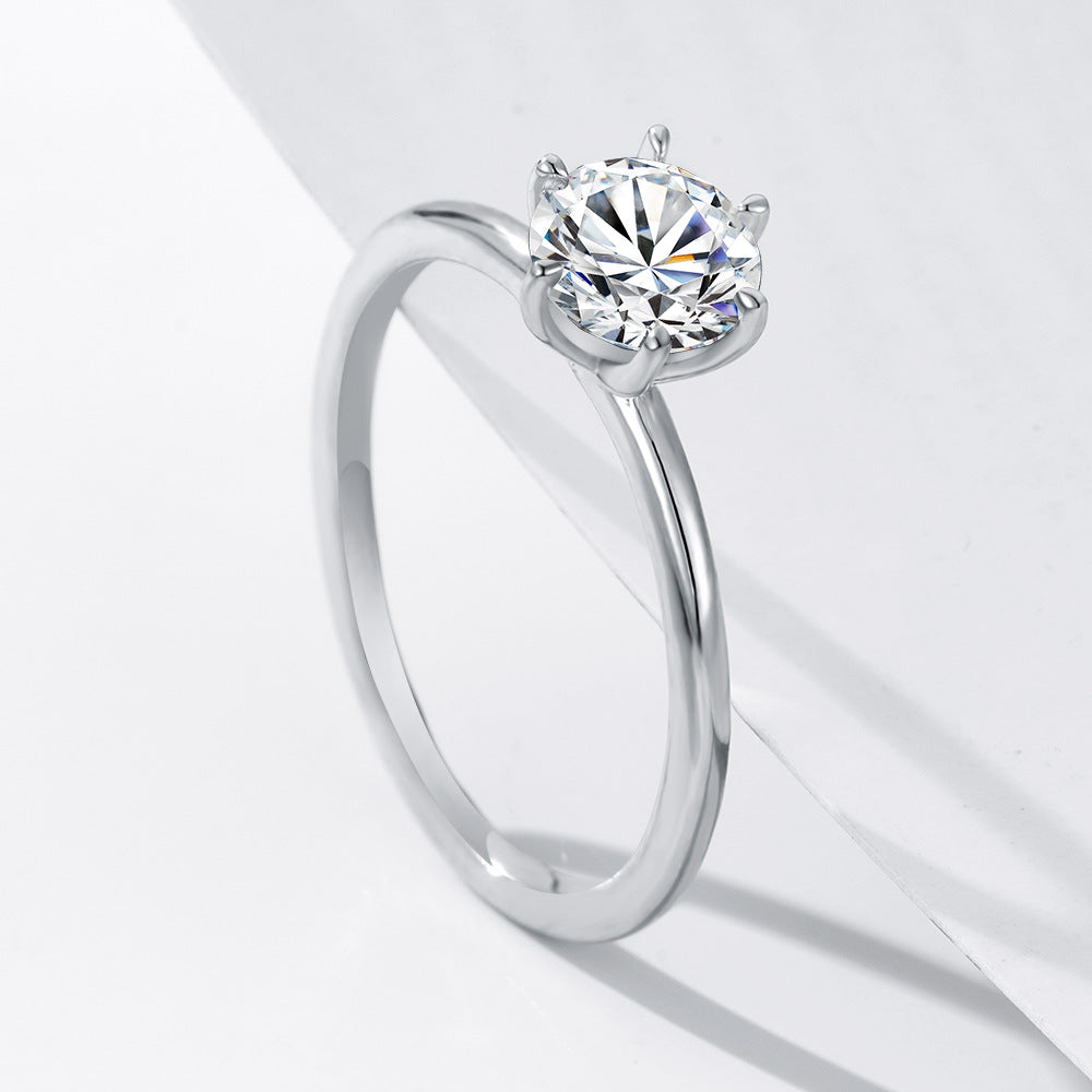 Elevate your elegance with the S925 sterling silver mozzarella diamond 1 carat ring, a stunning piece of jewelry that embodies both simplicity and versatility. Crafted with care, this classic six-claw simulation diamond engagement ring is designed to make every occasion special.