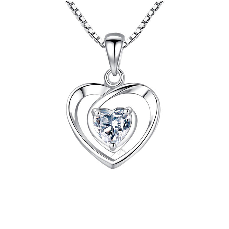 (Pendant Only) Valentine's Day Gift Love Zircon Heart Silver Pendant for Women